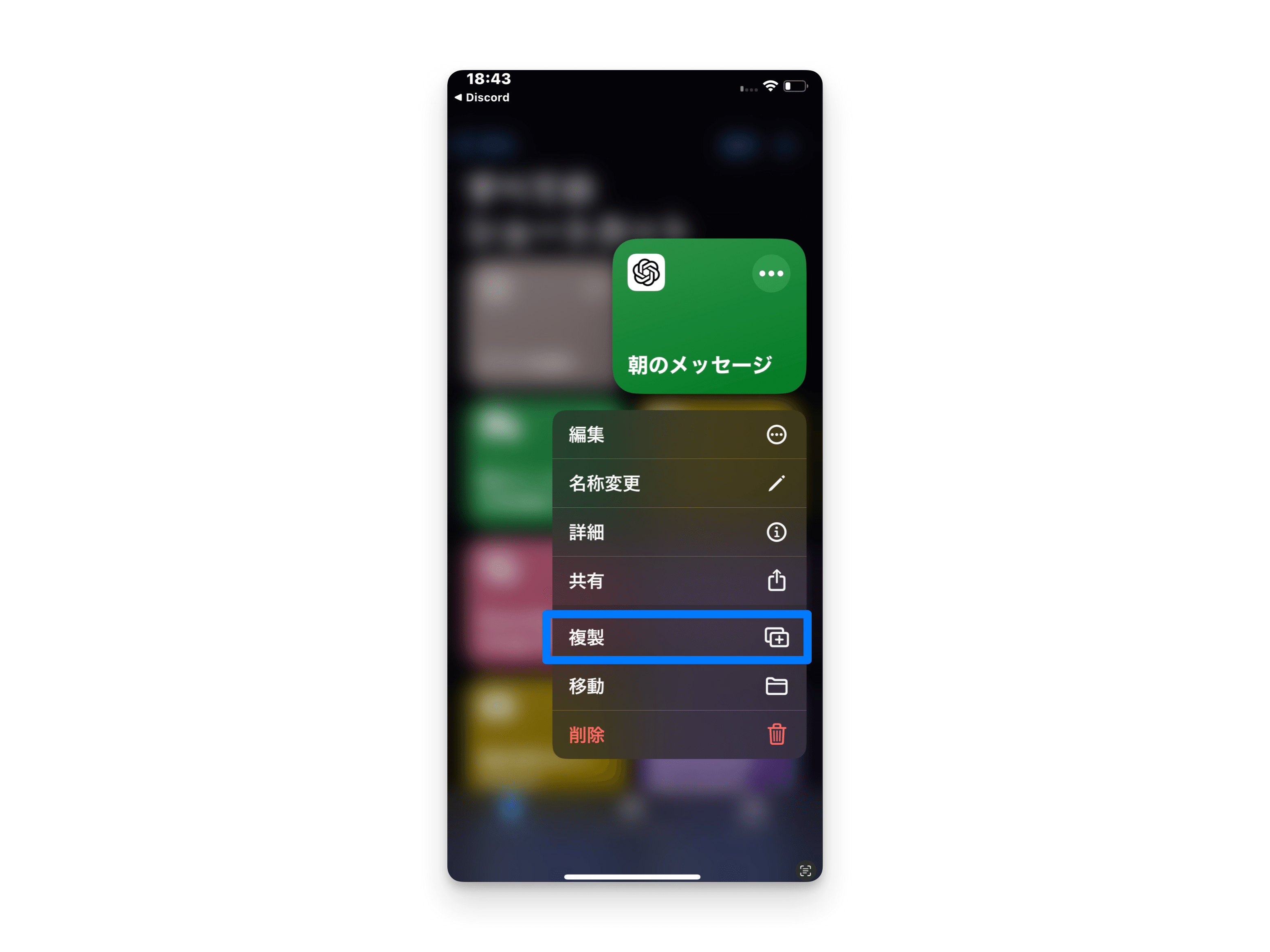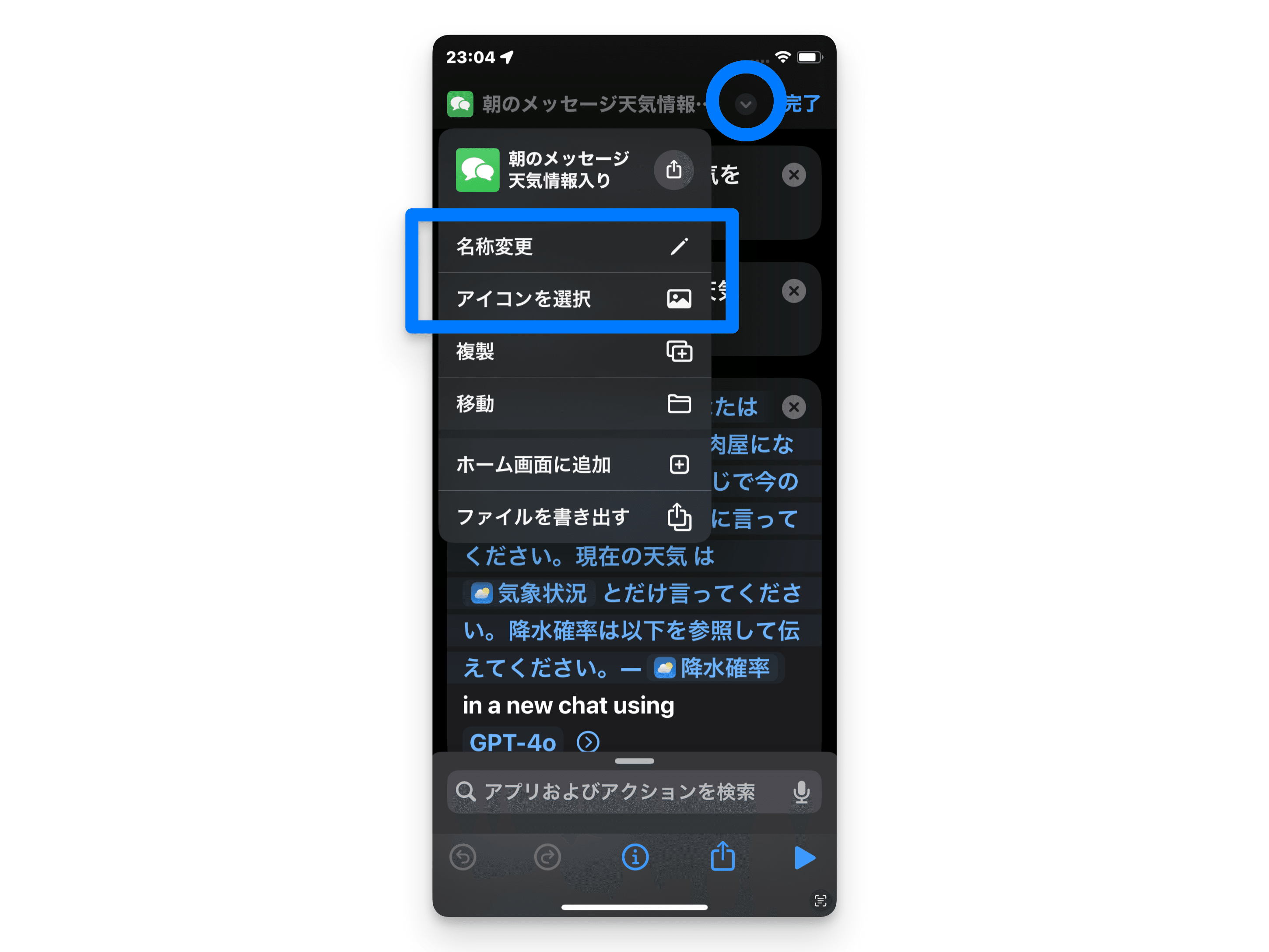 ChatGPTと連携したショートカットを作成する手順は以下の通りです。