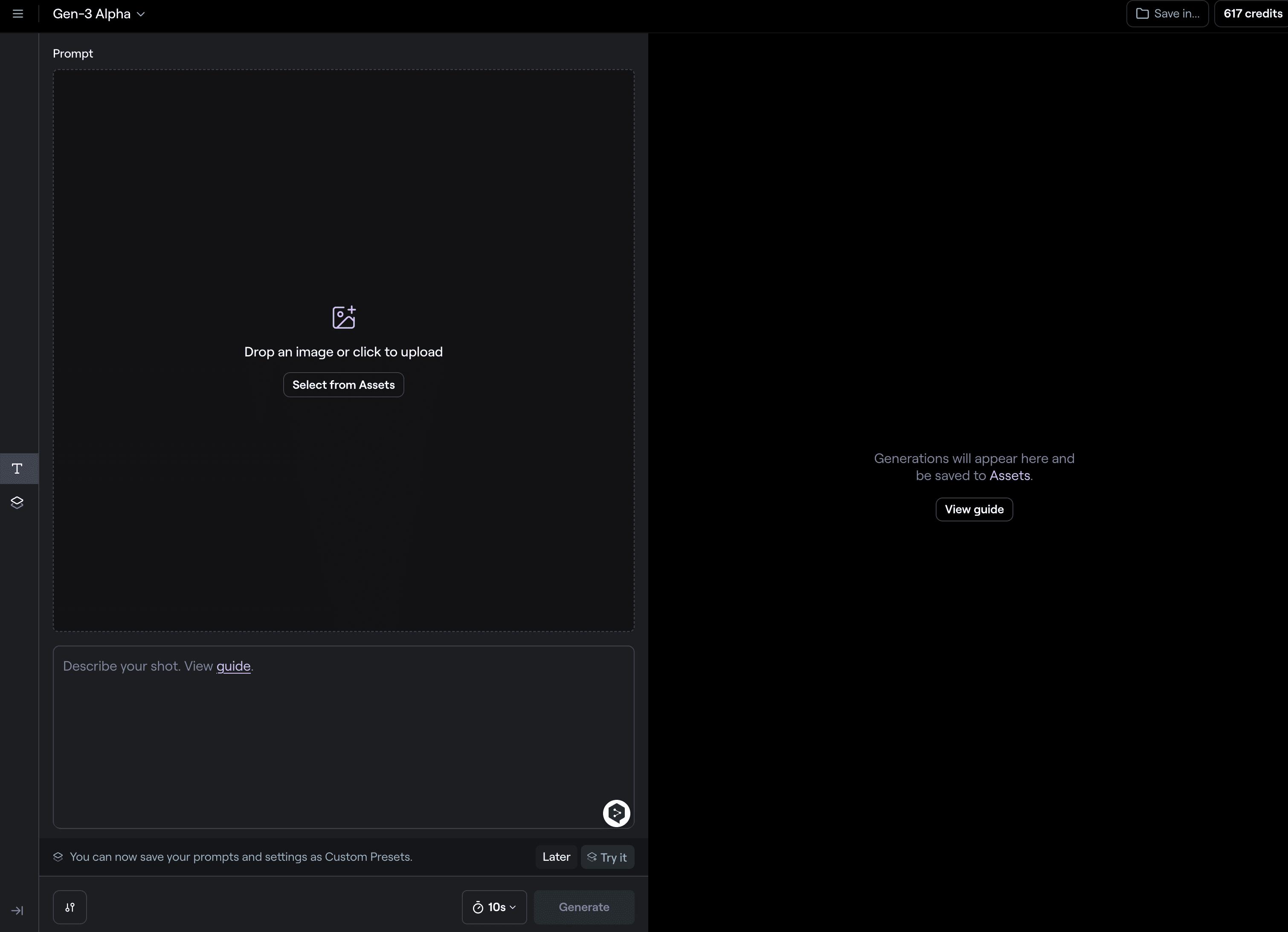 シンプルな操作性: Runway Gen-3は直感的なUIで、初心者でもImage to Video機能を簡単に操作できます。