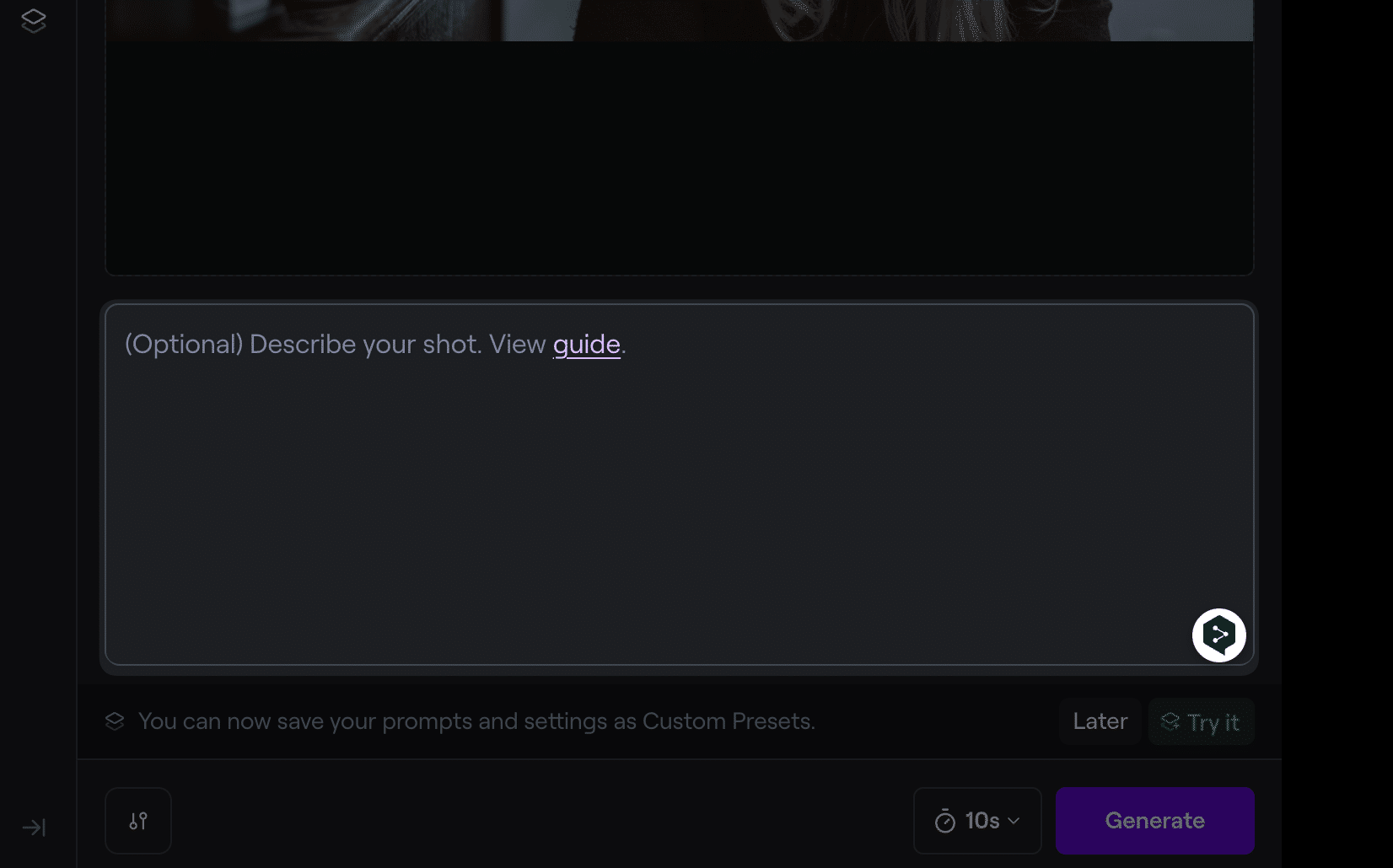 アップロードした画像の下にあるテキストボックスに、プロンプトを入力することができます。プロンプトとは、AIへの動画生成の指示です。