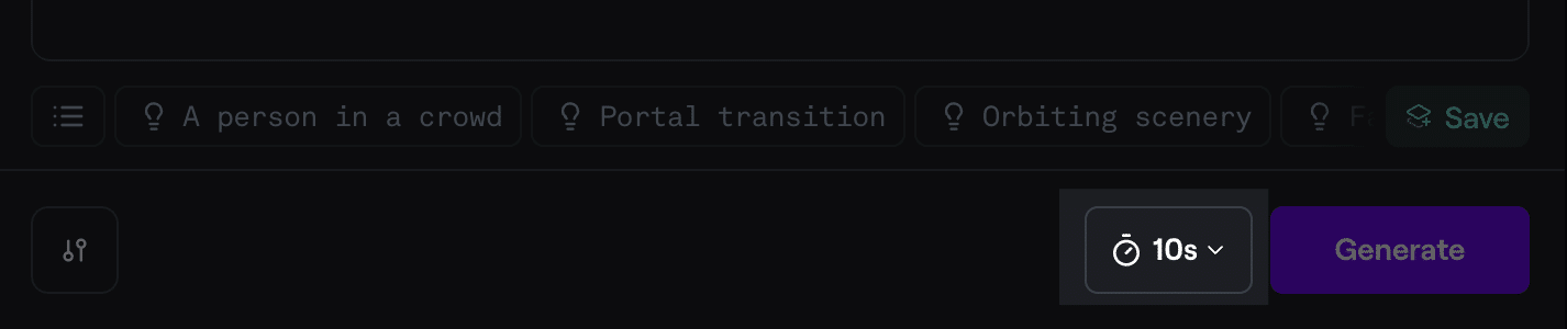画像のアップロードとプロンプト入力が完了したら、UI下部にある「Duration」の項目で生成する動画の長さを選択します。
