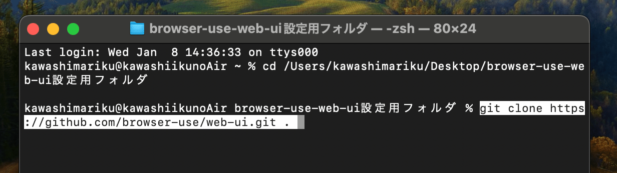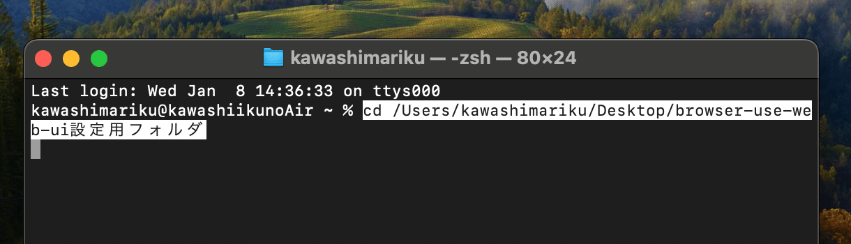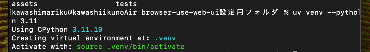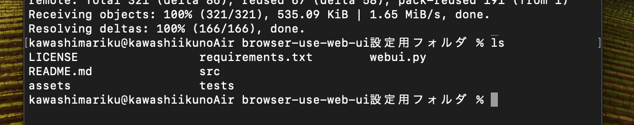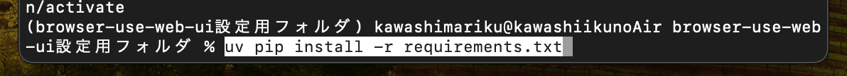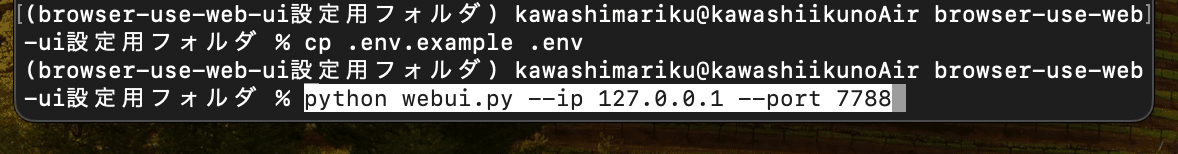cd /Users/[User名]/Desktop/browser-use-web-ui設定用フォルダ