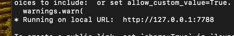 ターミナル上に Running on http://127.0.0.1:7788 と表示されたら、Webブラウザで同じURLへアクセスします。