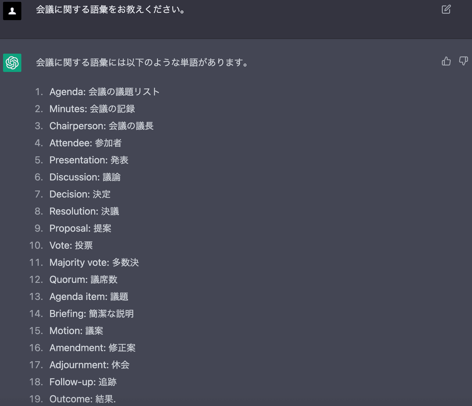 また、特定のトピックに関連する単語のリストアップにもChatGPTを使用できます。