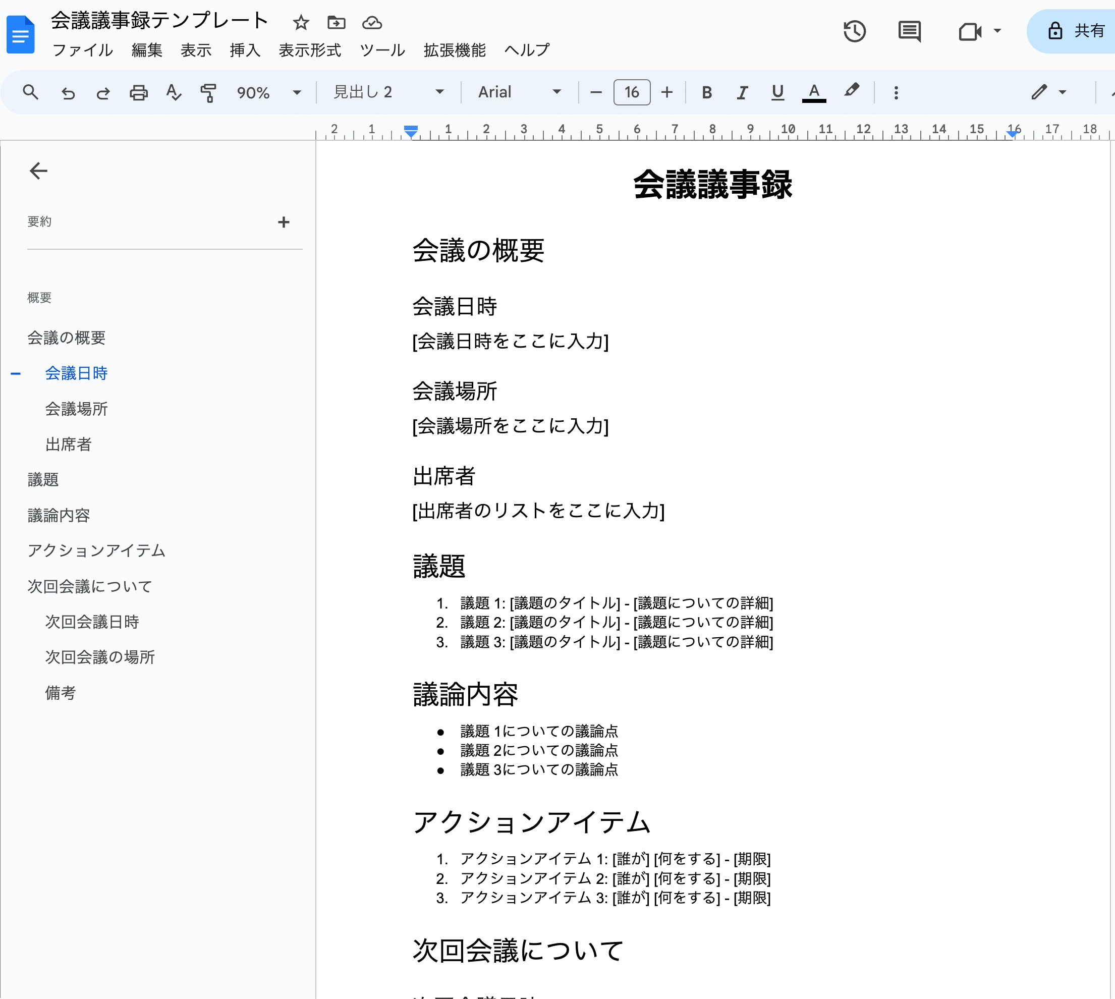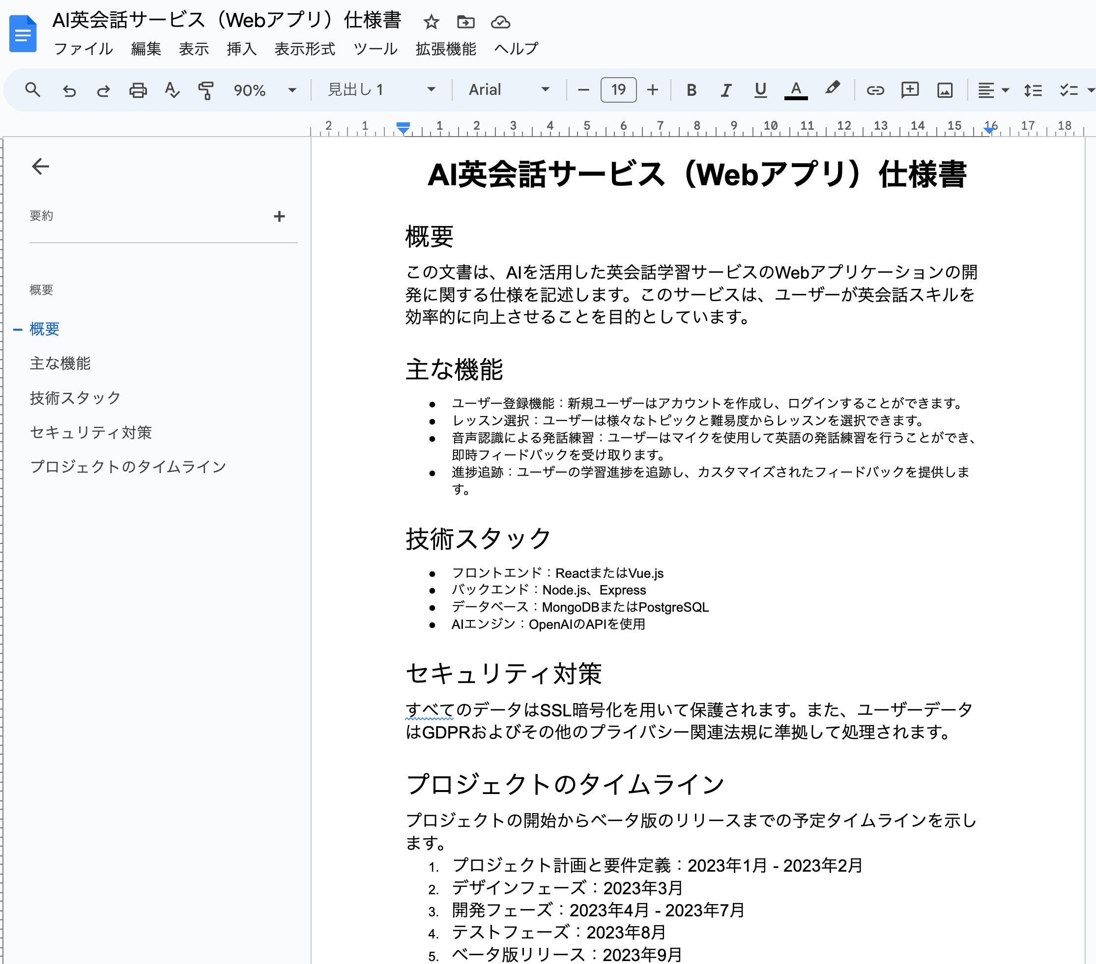 生成されたドキュメントは通常のGoogle Documentと同様に編集可能なので、必要に応じて内容を修正・追記することができます。