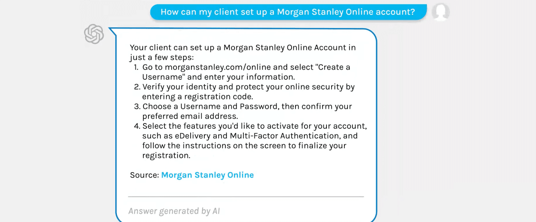 モルガン・スタンレーは、GPT-4を活用してウェルスマネジメント部門の知識ベースを整理し、内部向けのチャットボットを開発しています。このチャットボットは、ウェルスマネジメント関連の情報を包括的に検索し、アドバイザーが必要な情報を瞬時に入手できるようにすることを目指しています。同社は、現在200人以上の従業員がシステムを利用し、フィードバックを提供しており、さらにOpenAI技術を評価して顧客とのフォローアップコミュニケーションを効率化することも検討しています。