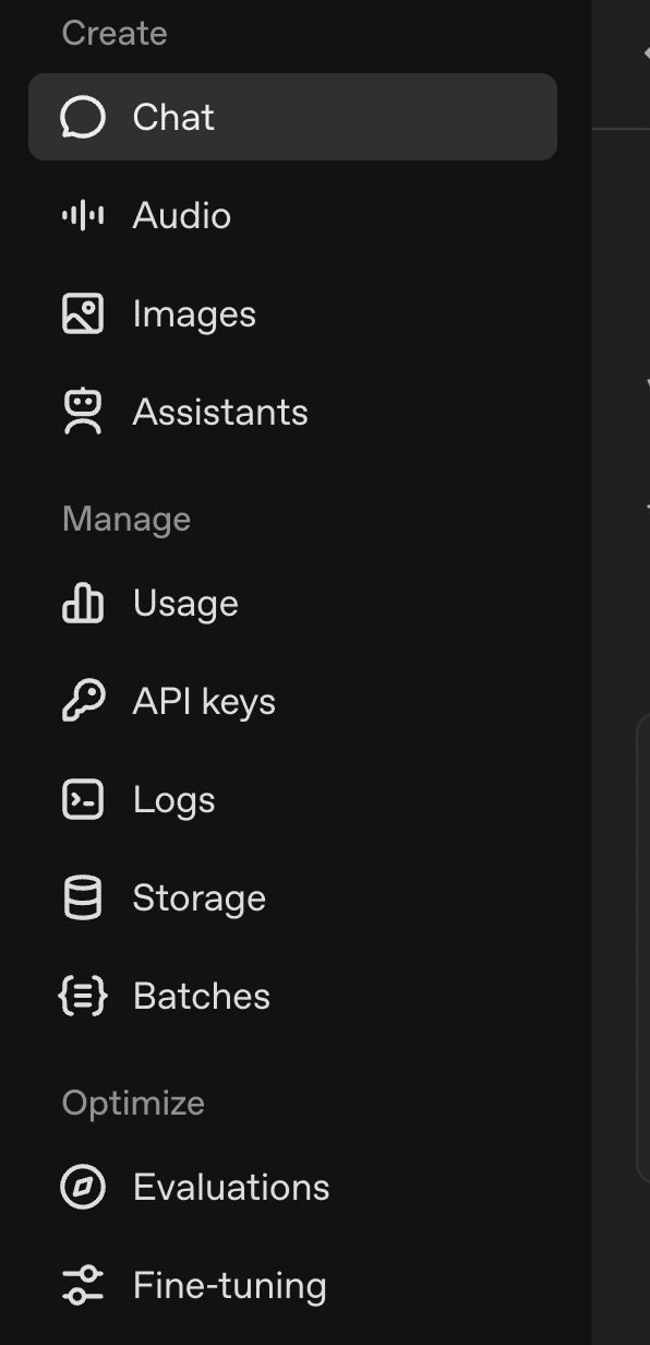 Optimize: 作成したプロンプトやモデルを評価するEvaluationsや、Fine-tuningなど、性能を「最適化」するための高度な機能が含まれます。