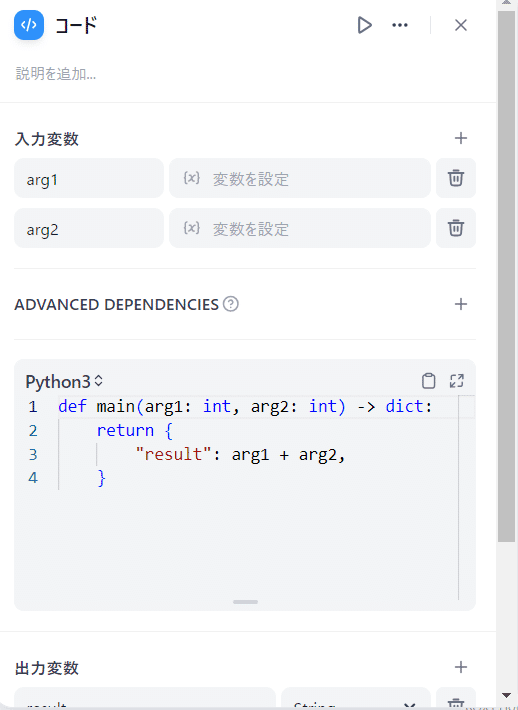 入力変数にはユーザーの入力やAPIの出力・APIの応答などいろいろな変数を入れることができます。