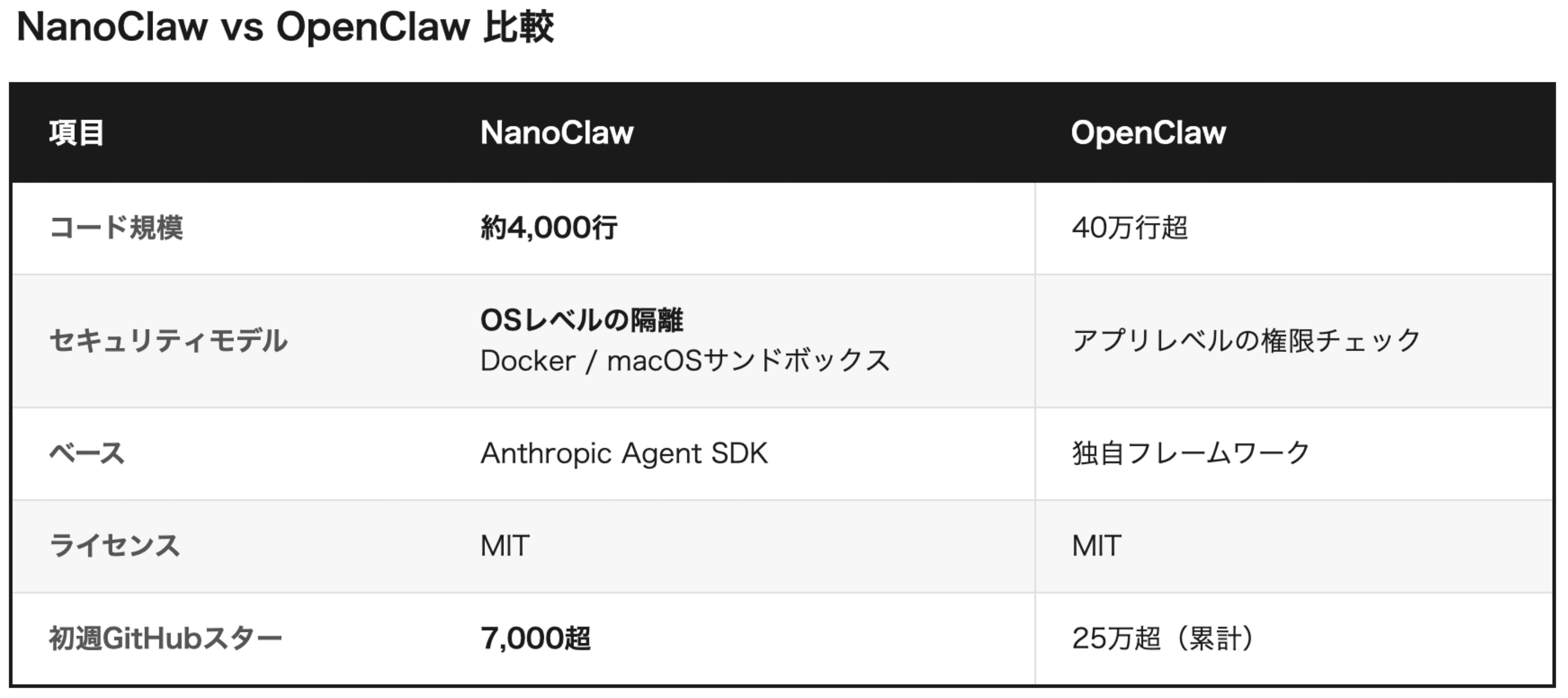 そこで登場したのが、2026年3月1日にリリースされたNanoClawです。