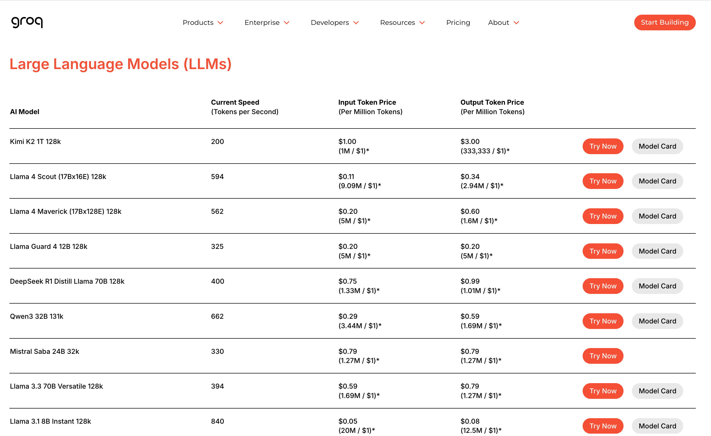 この課題を解決する鍵となるのが、本記事で紹介するGroqの「推論向け高速AI処理技術」です。Groqは独自のLPU(Language Processing Unit)により、最新のオープンソースモデルを高速かつ低コストで実行する環境を提供します。実際に、先に挙げたKimi K2やQwen、Llama 4といったモデルの多くが、リリース直後からGroq上で利用可能となっています。
