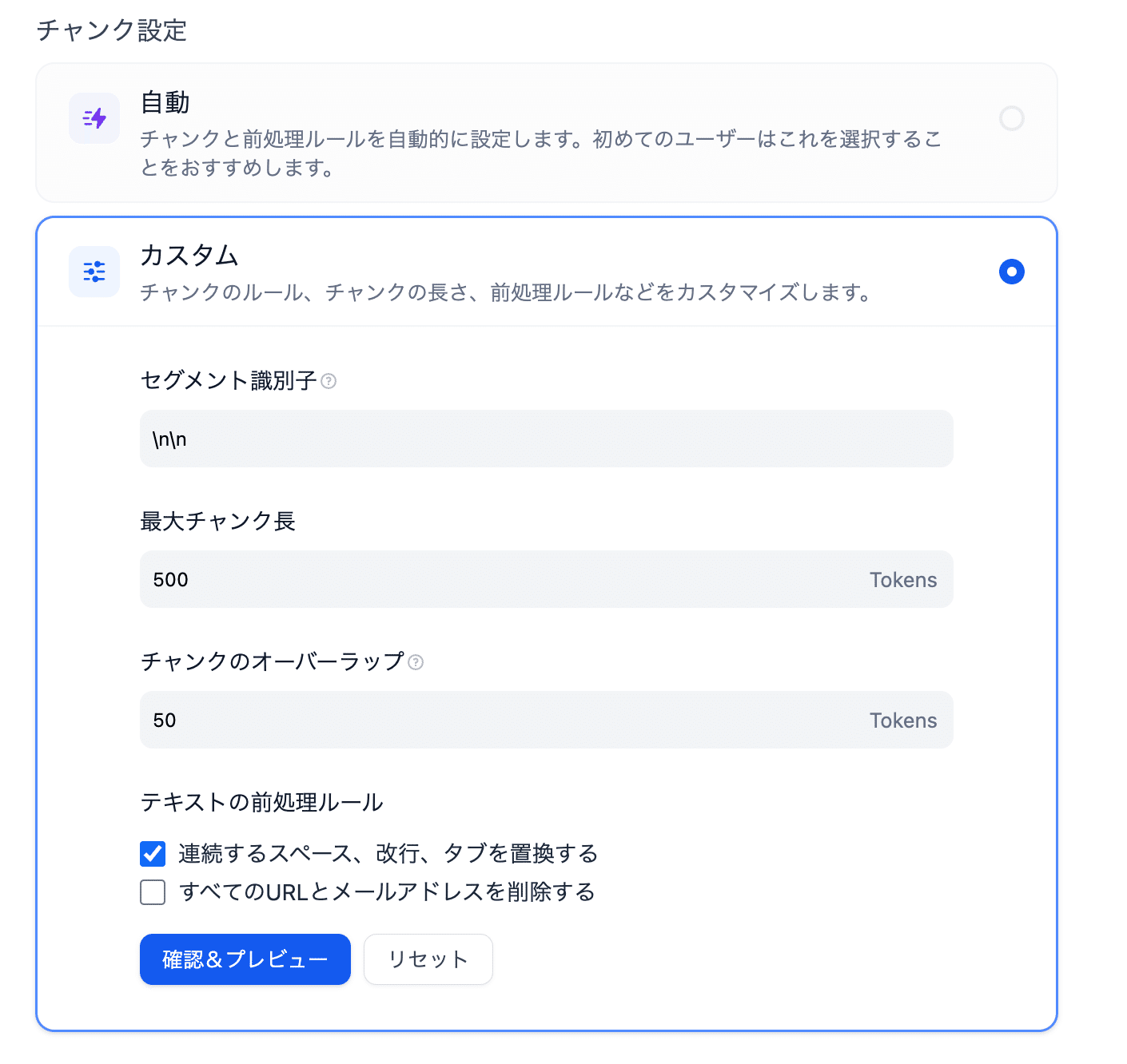長いテキストを適切なサイズに分割する処理です。分割サイズが適切でないと、ボットが質問の文脈を理解できず、正確な回答を生成できない可能性があります。