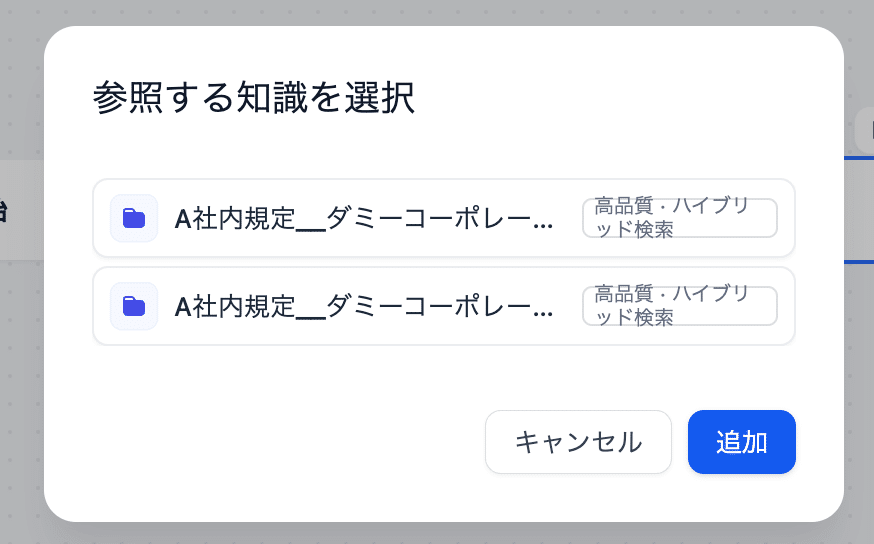 +ボタンをクリックし、先ほど作成したナレッジを呼び出します。