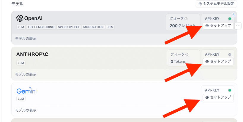 API連携を済ませて、LLMを設定します。API連携の方法がわからない方向けに、連携方法は後述しています。
