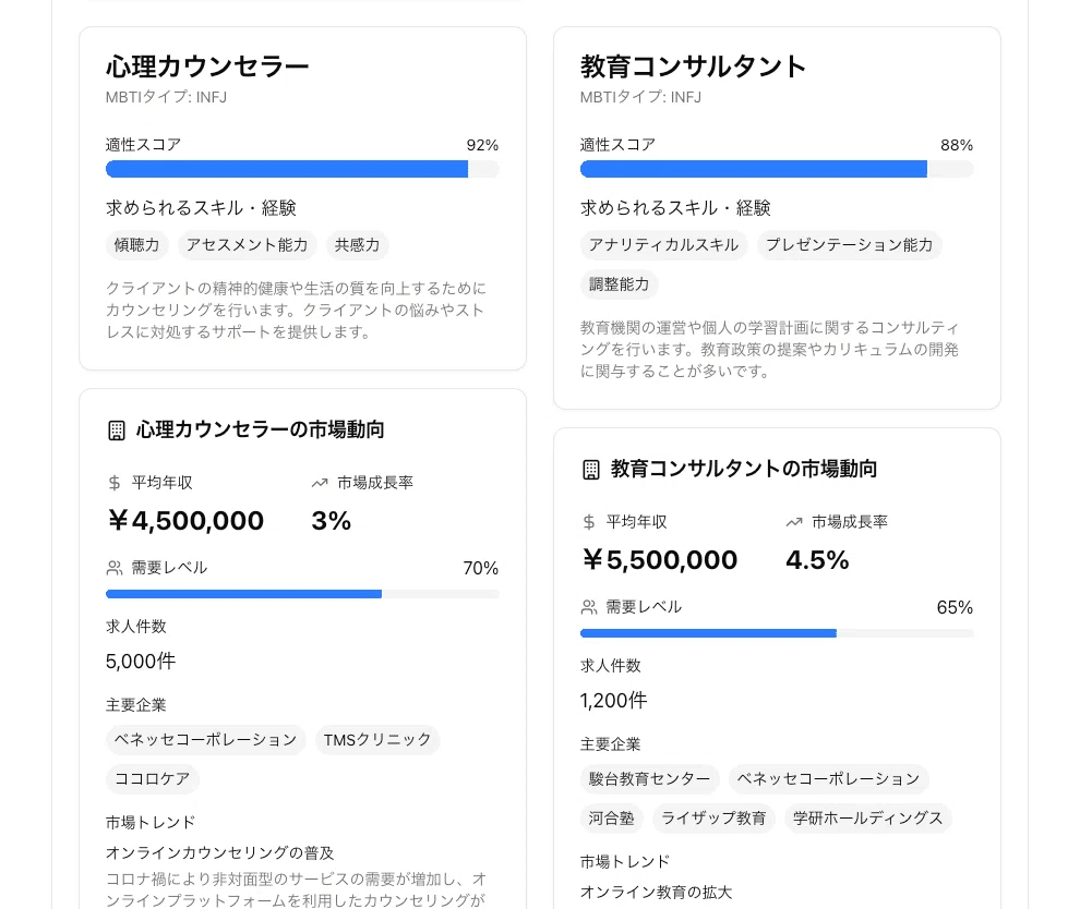 背景:MBTI診断を活用した転職支援を行う中で「診断結果をうまく仕事選びに活かせない」という求職者の声を受け、AI+MBTI診断に着目した
