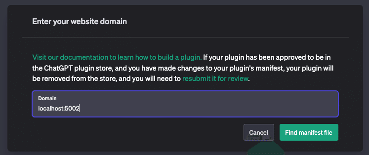 次に、自身が設定したport番号に応じたドメインを入力します。今回の場合は localhost:5002 がプラグインのドメインになります。