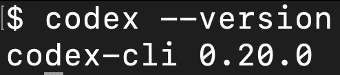 CLIを更新し、codex --version が 0.20.0以上になっていることを確認(挙動が新方式に揃います)。