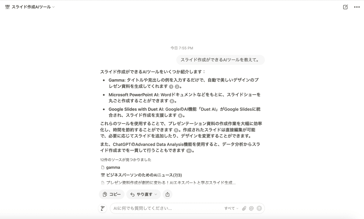 業務の中でゼロから1を作っているものと、1から10を作っているものがあるとすると後者はNotionAIのこの機能と相性が良い可能性が高いです。
