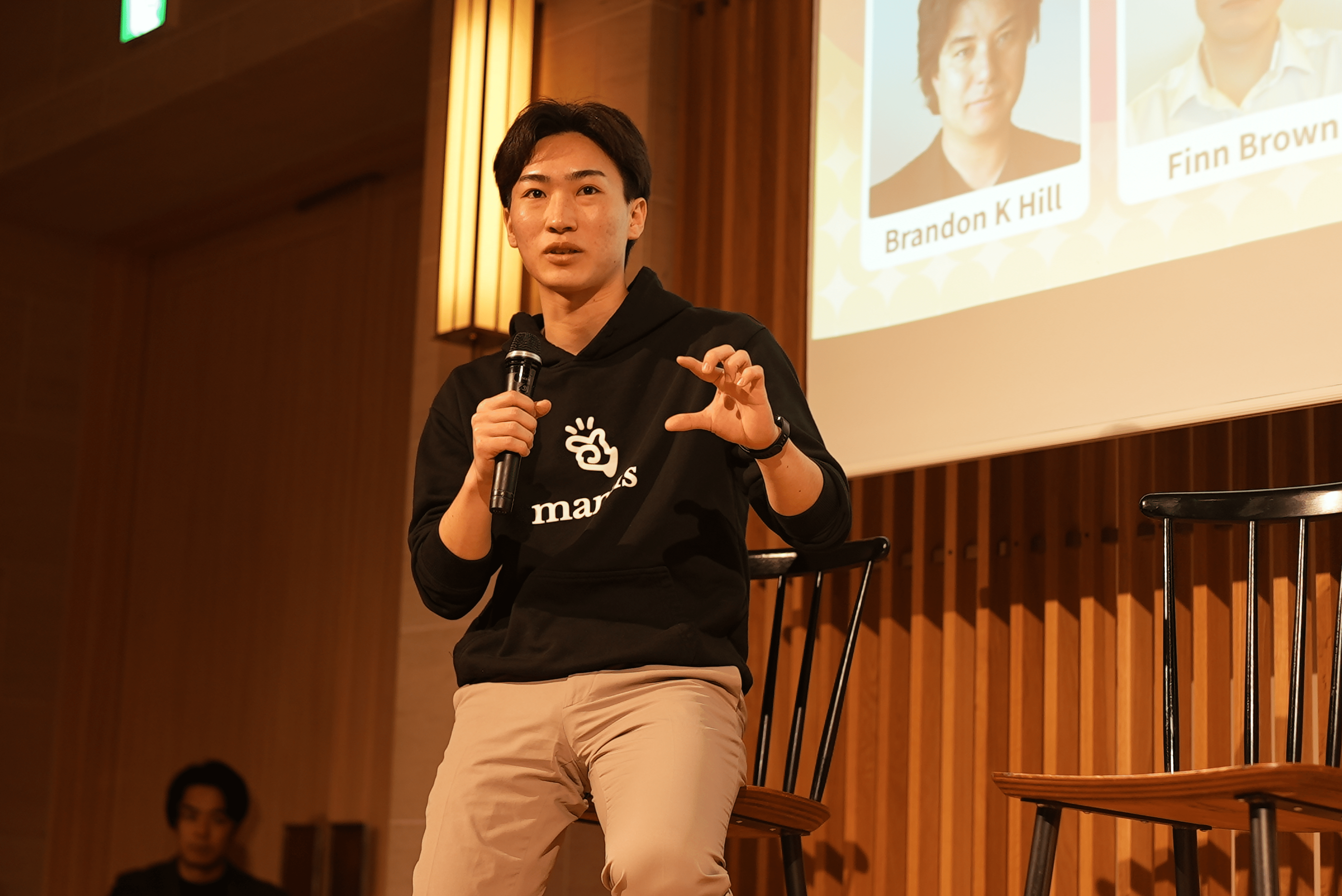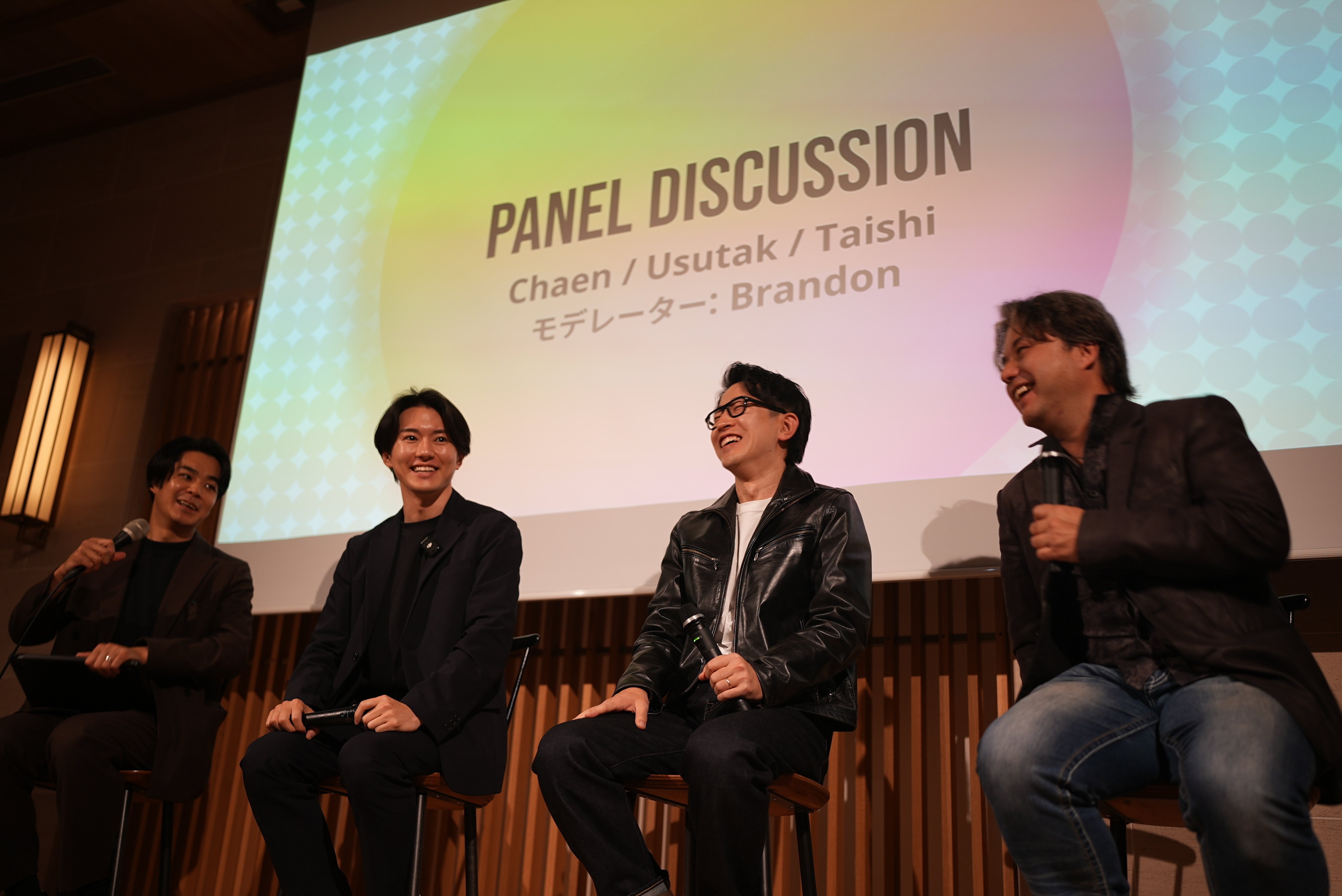 後半は、Michikusa CEO usutaku さん(@usutaku_channel)、デジライズ代表 チャエン さん(@masahirochaen)、AlphaByte CEO Taishi さん(@taishiyade)の3名が登壇し、Brandon K. Hillさんがモデレーターを務めるパネルディスカッションが行われました。