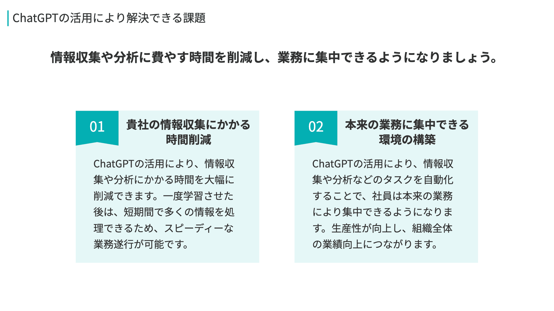 - 定型的な文章作成に工数がかかり、生産性が上がらない