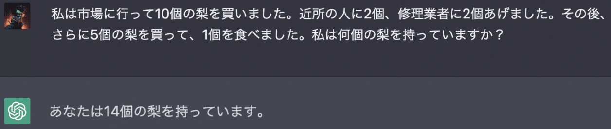 梨の数を計算すると、実際は10個なので、この回答は間違っています。