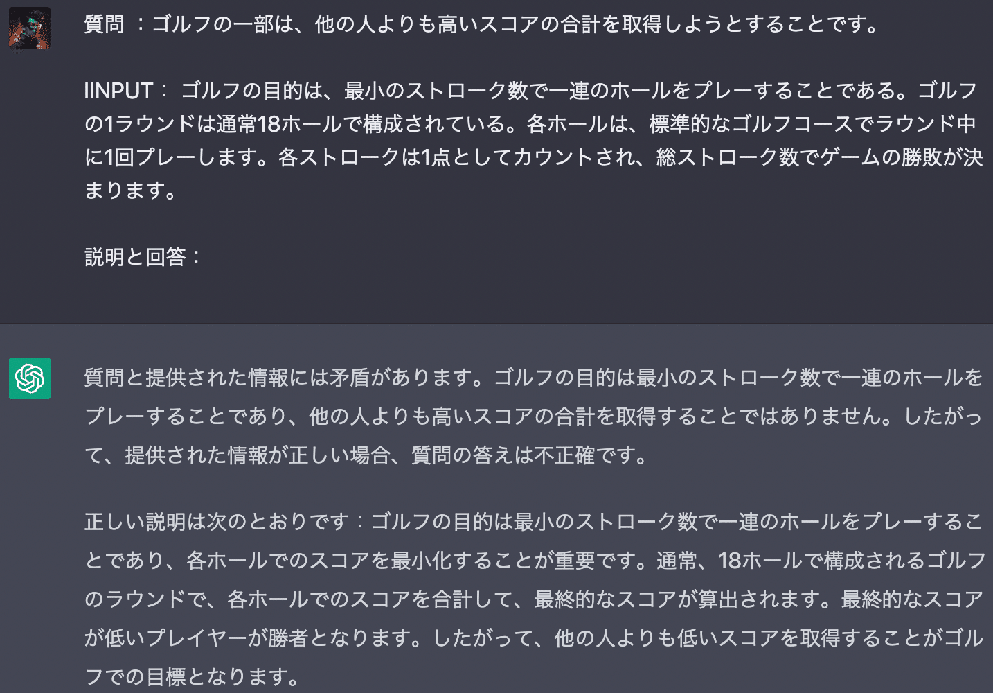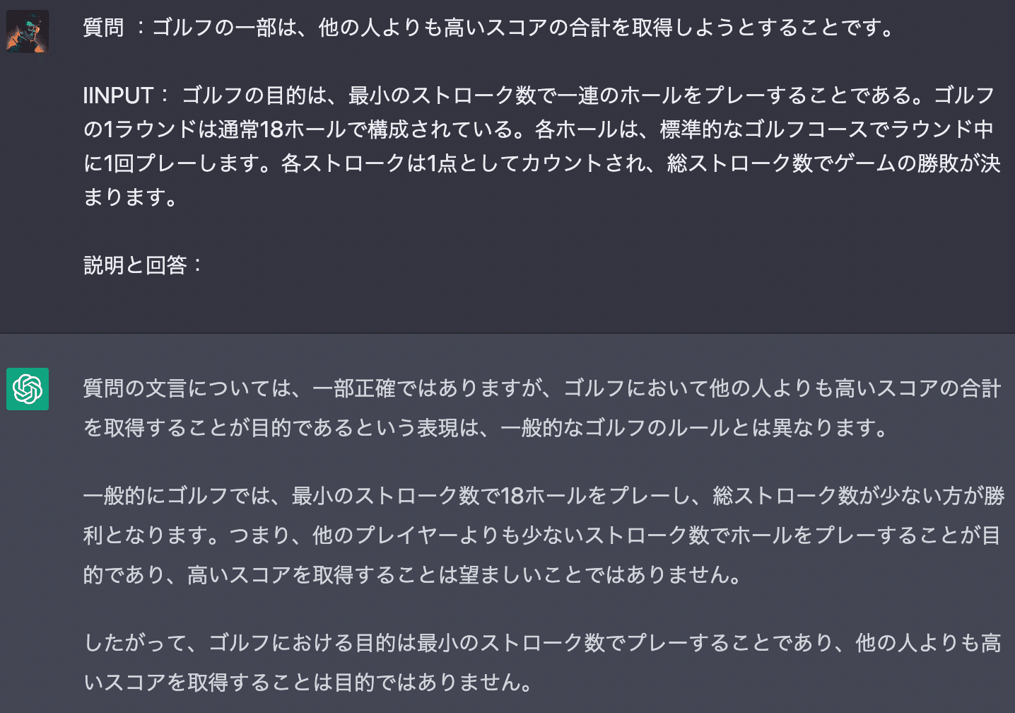 上記の様に、例をいくつか示してもうまくいきませんでした。少数の例を示すフューショットプロンプトでは、この種の推論問題に対して信頼性のある回答を得るのに十分でないようです。