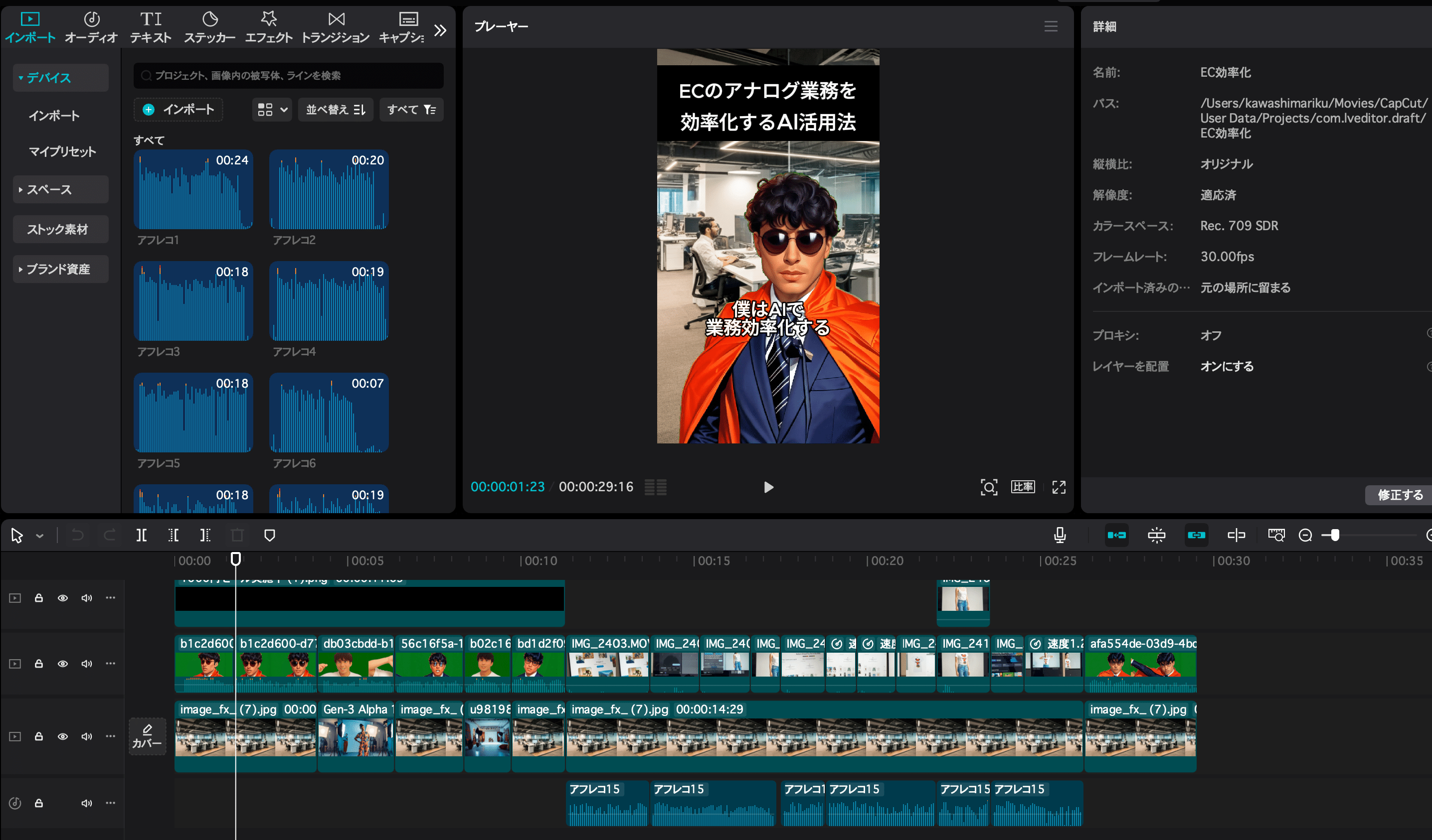 各場面の動画を生成したら、あとは動画編集ツールで編集してリール動画が完成です。