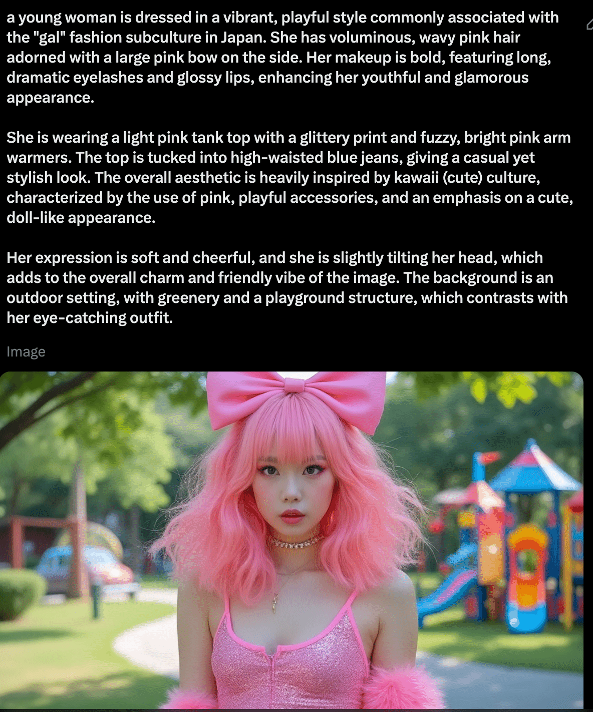 動画②の元となったギャルの画像はGrokのFluxを用いて作成しました。
