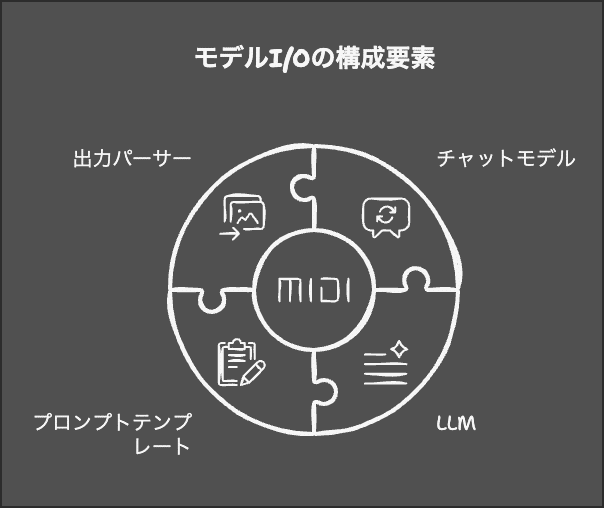 Model I/Oは、LLMとやり取りするためのインターフェースを提供します。これには、以下の3つの要素が含まれます。