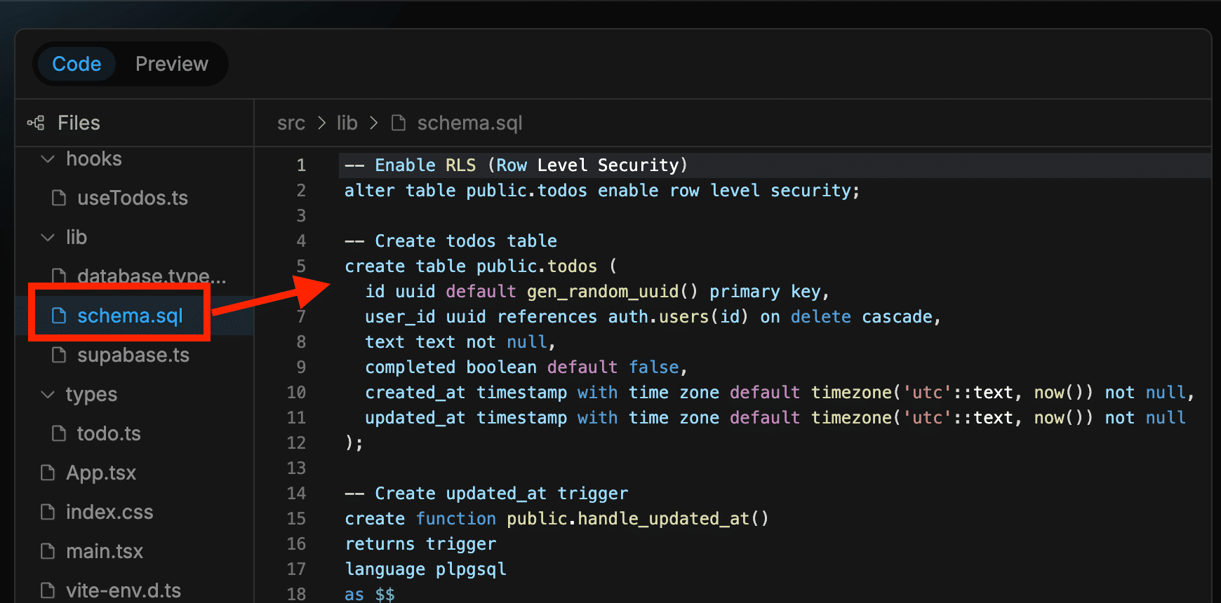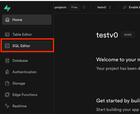 再度スキーマを作成してくれるので、SupabaseのSQL Editorに移動して、スキーマをコピペします。