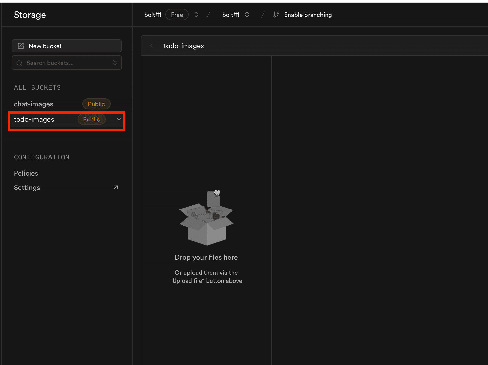 Bolt.newもSupabaseと連携することで、データベース、ストレージを手軽に追加できます。