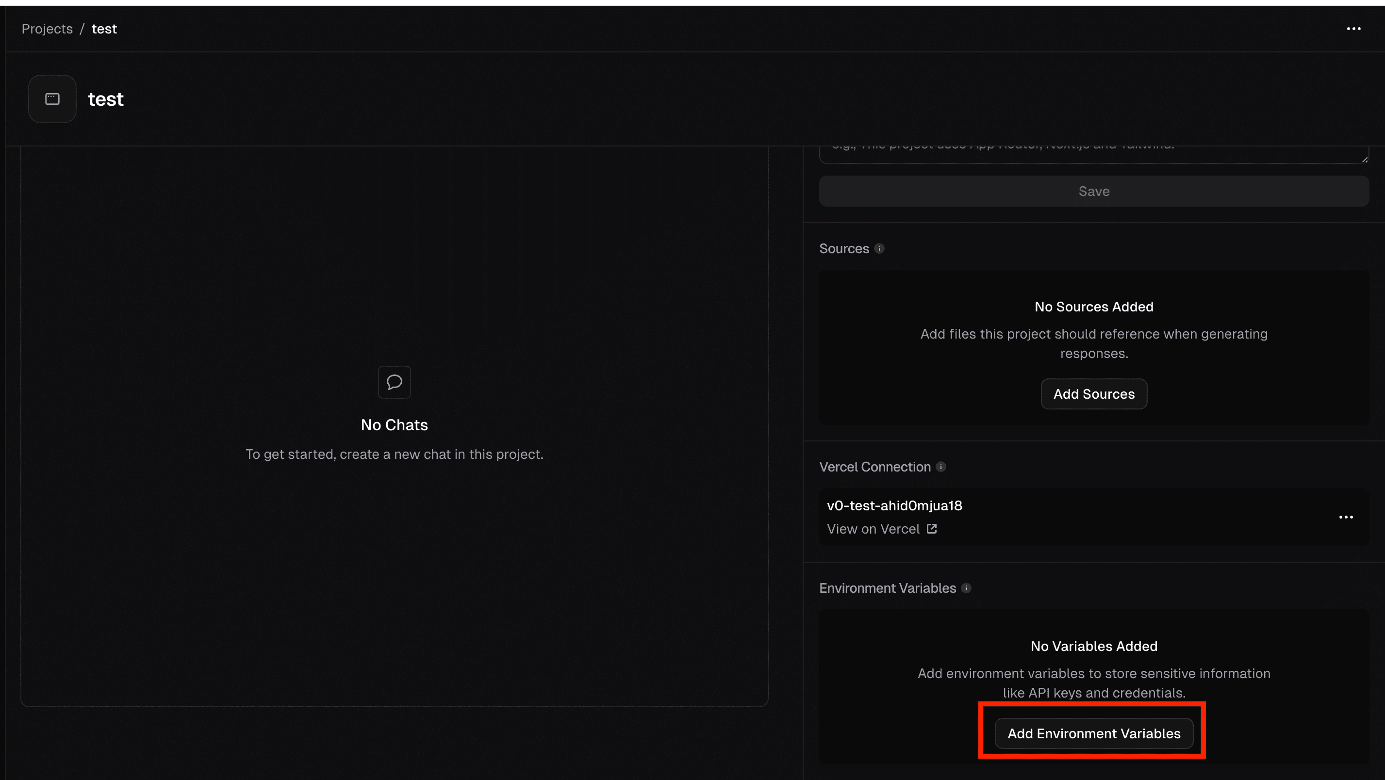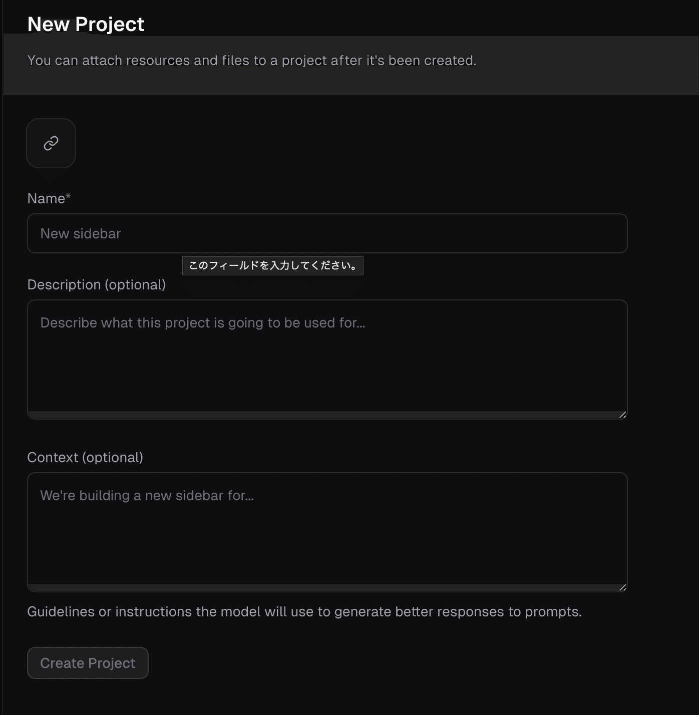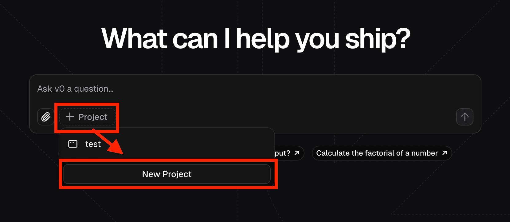 v0のホーム画面の写真の箇所から、「New Project」をクリック。
