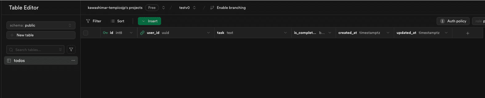 Todoアプリが作成されたら、Supabaseと連携して、データベースを作成していきましょう。