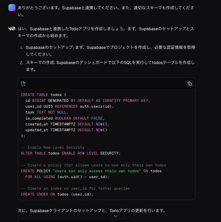 v0とSupabaseを連携してデータベースを作成する流れを、Todoアプリの作成を例として解説します。