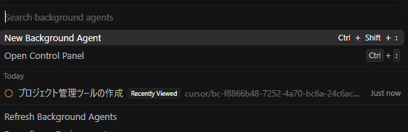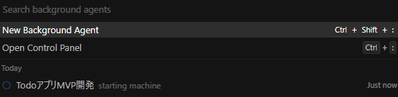 ここから現在稼働中のBackground Agentや新規作成を行えます。