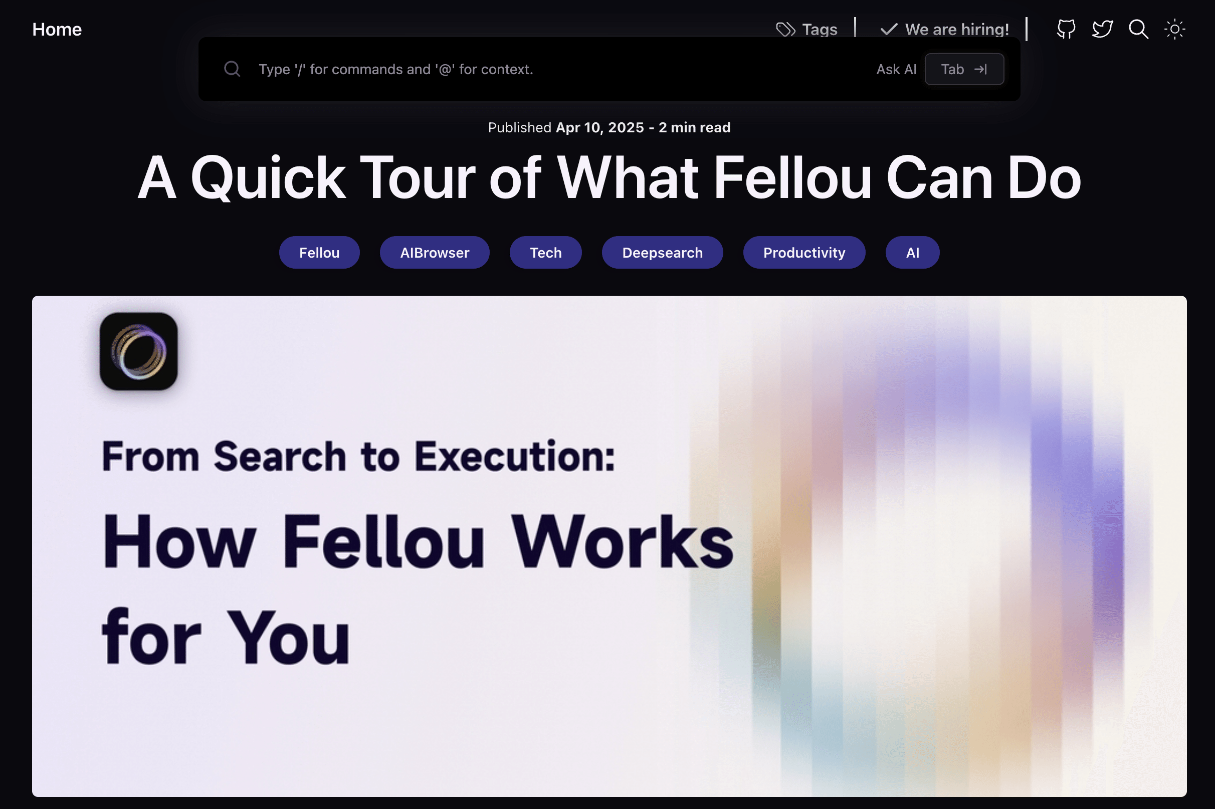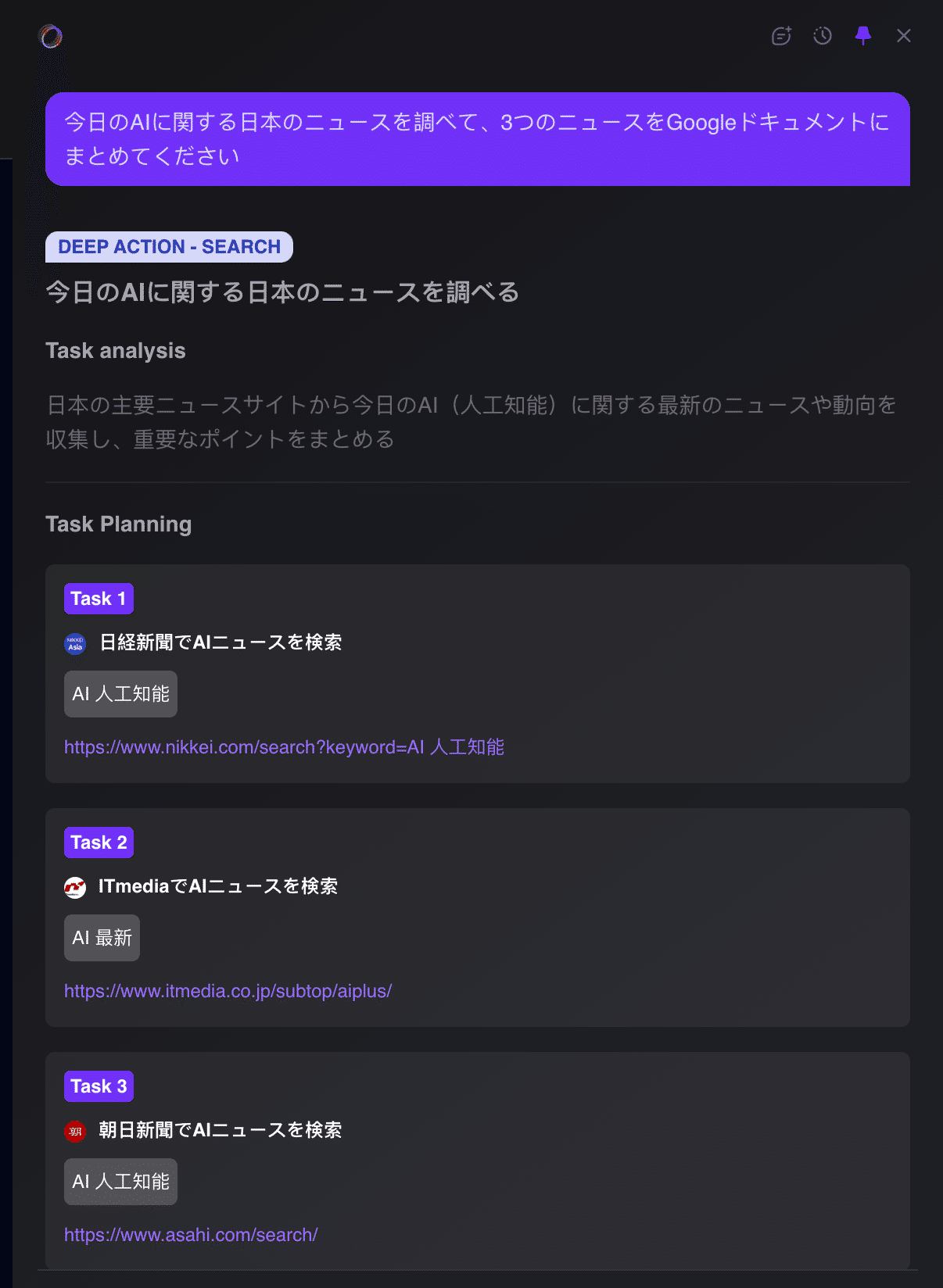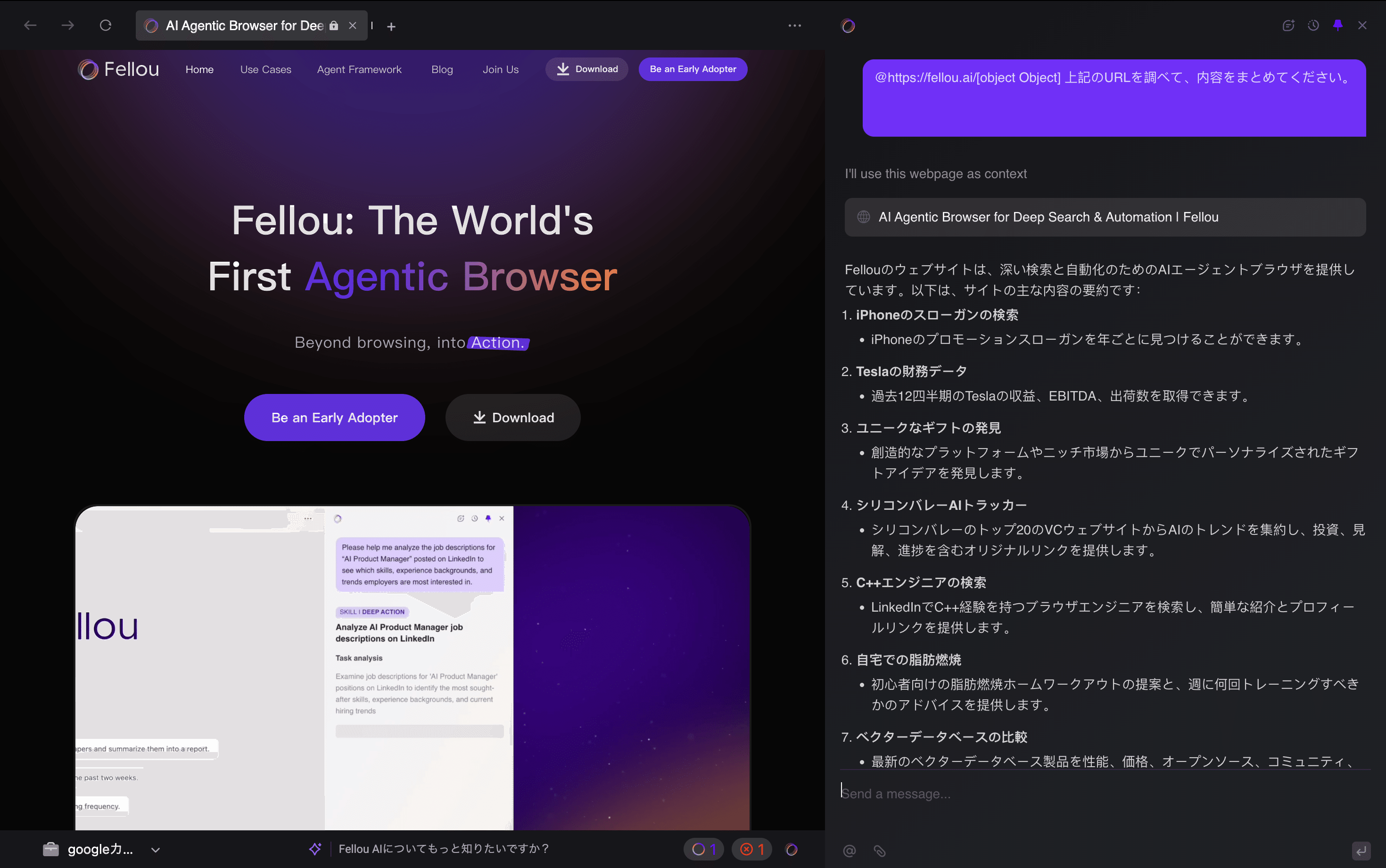 従来のブラウザが“受動的”なツールだったのに対し、Fellou は “能動的に働くブラウザ” として、検索・入力・投稿といった単調な作業からユーザーを解放してくれます。