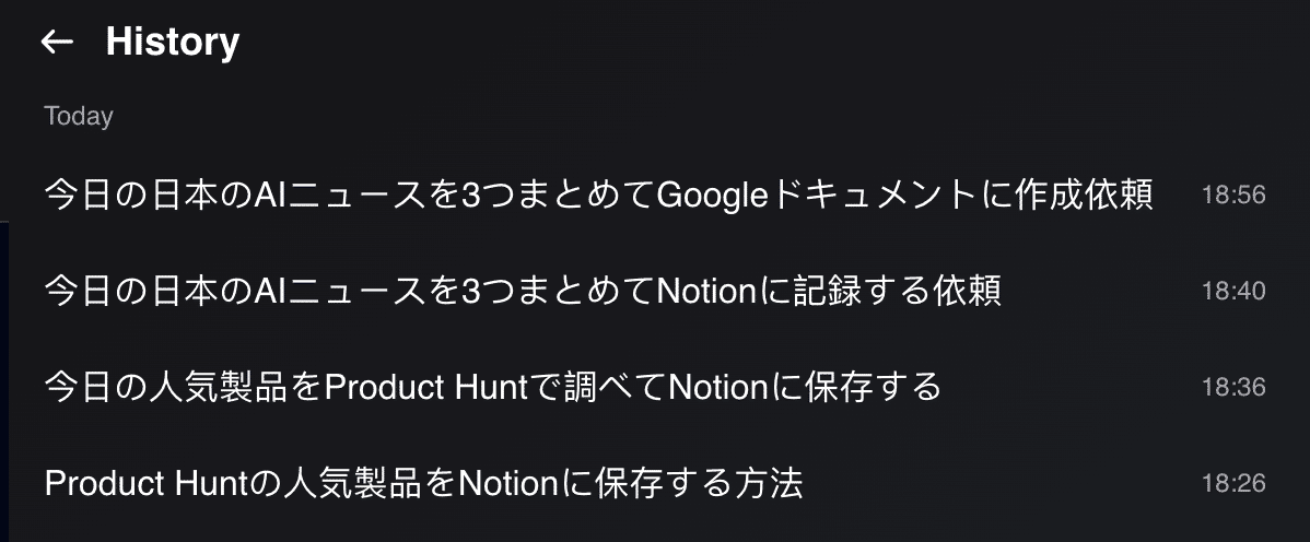 過去に実行したタスクや取得した情報にいつでも遡ってアクセスできます。