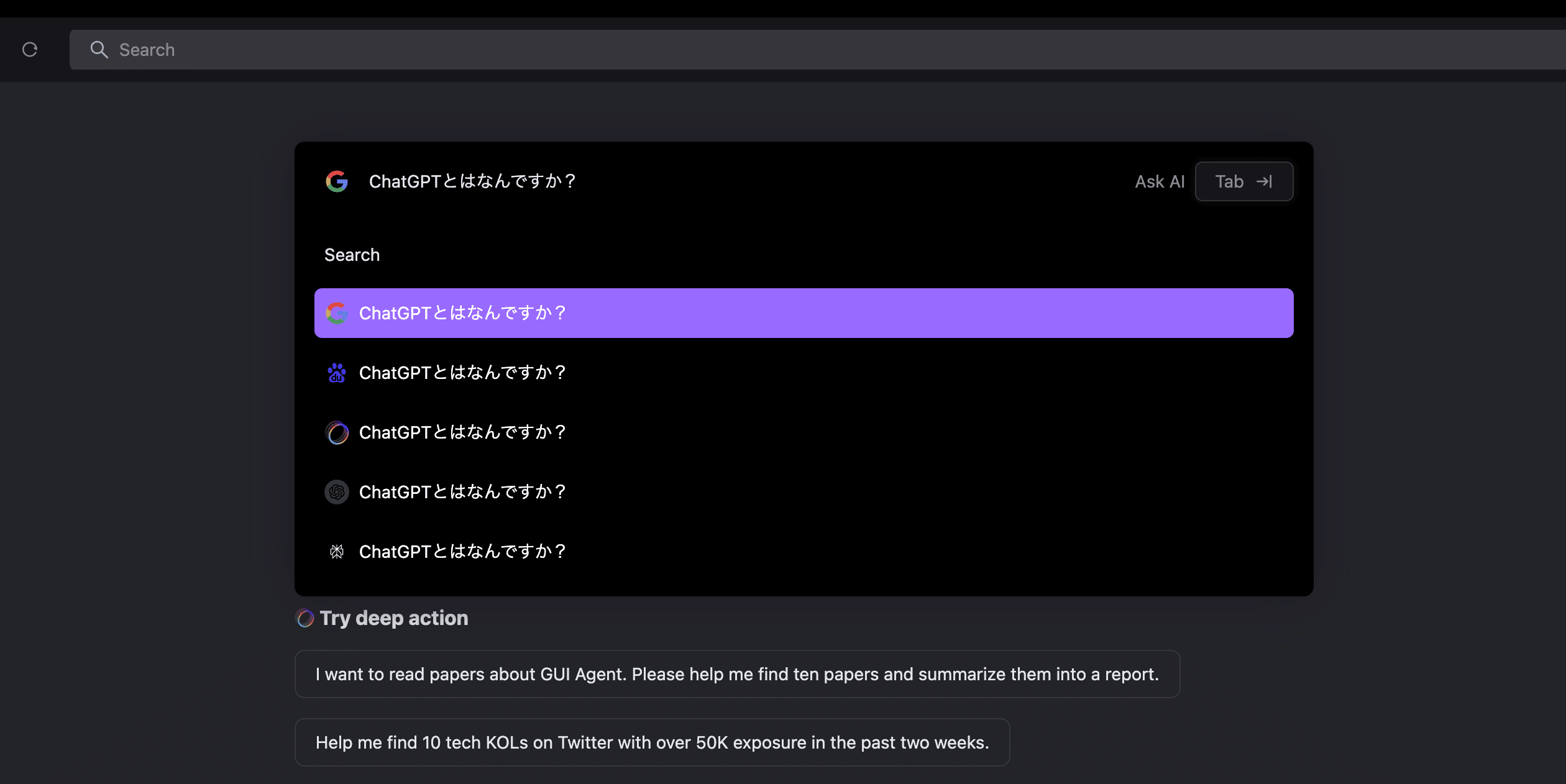 Fellou は開いているタブの内容を理解し、必要になりそうな次の操作を提案したり、ユーザーの指示に基づいた動作の実行が可能です。