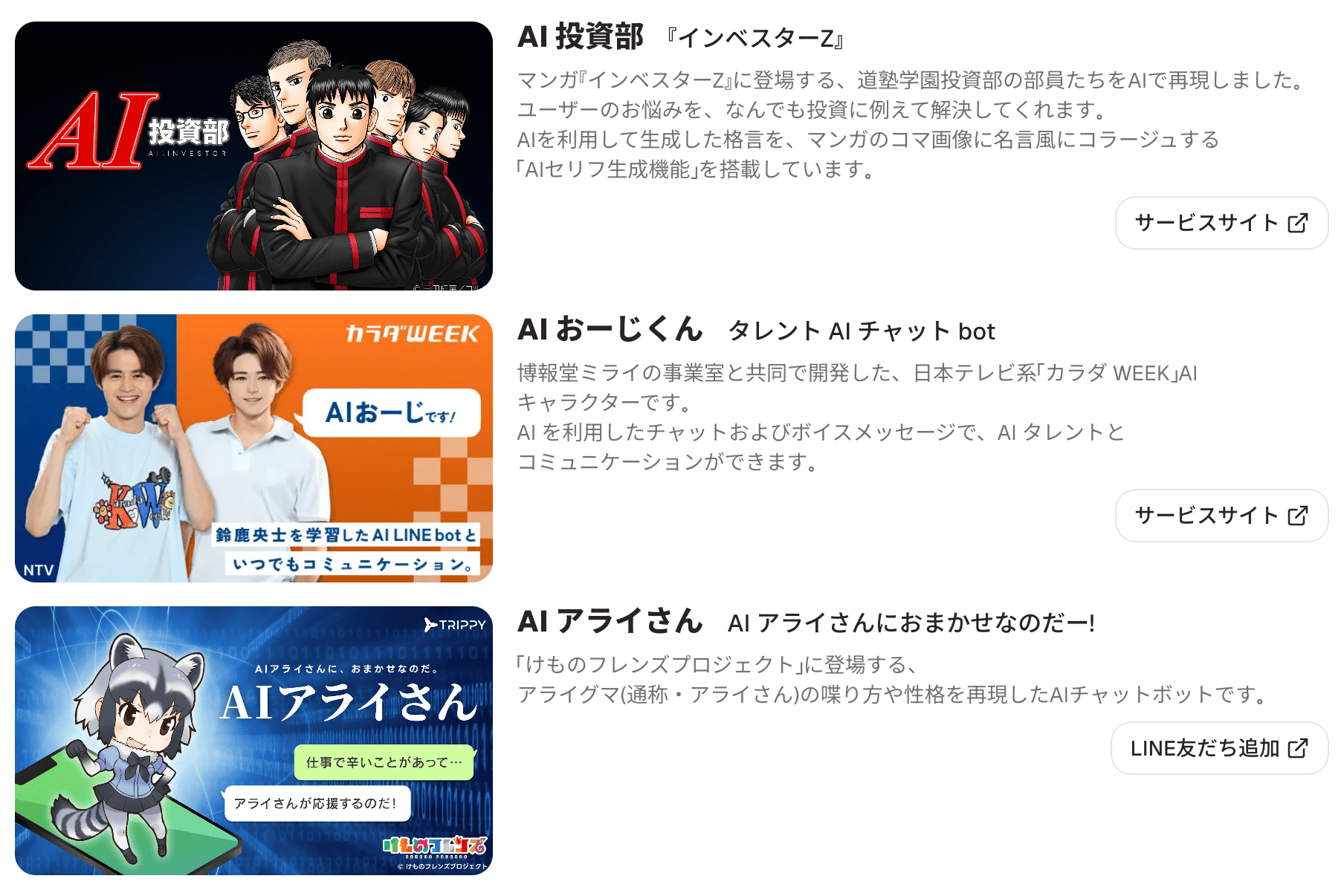 1年半~2年前、まだOz-オズ-を作っていない頃はLINEボット開発がメインでした。もしかしたら、見ていただいたことがあるかもしれませんが、「けものフレンズ」とコラボした「AI アライさん」をリリースしたこともあります。