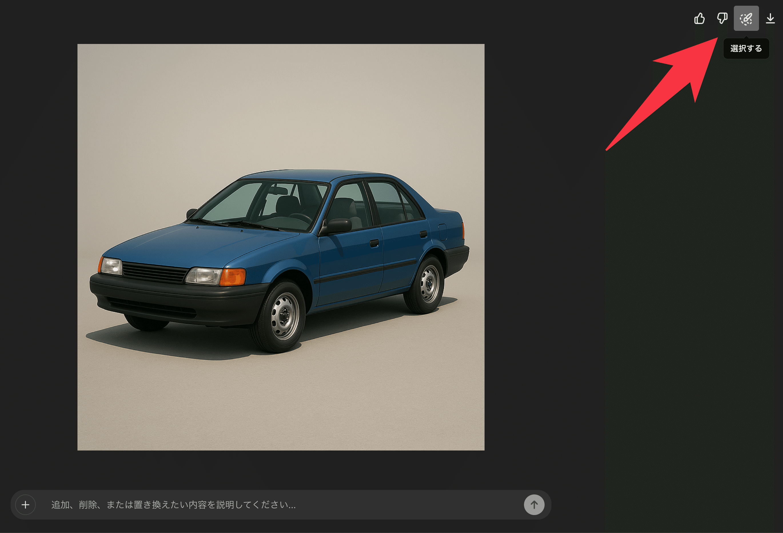 選択ツールで範囲を指定したら、次はその部分をどう変更したいかをChatGPTに伝えます。