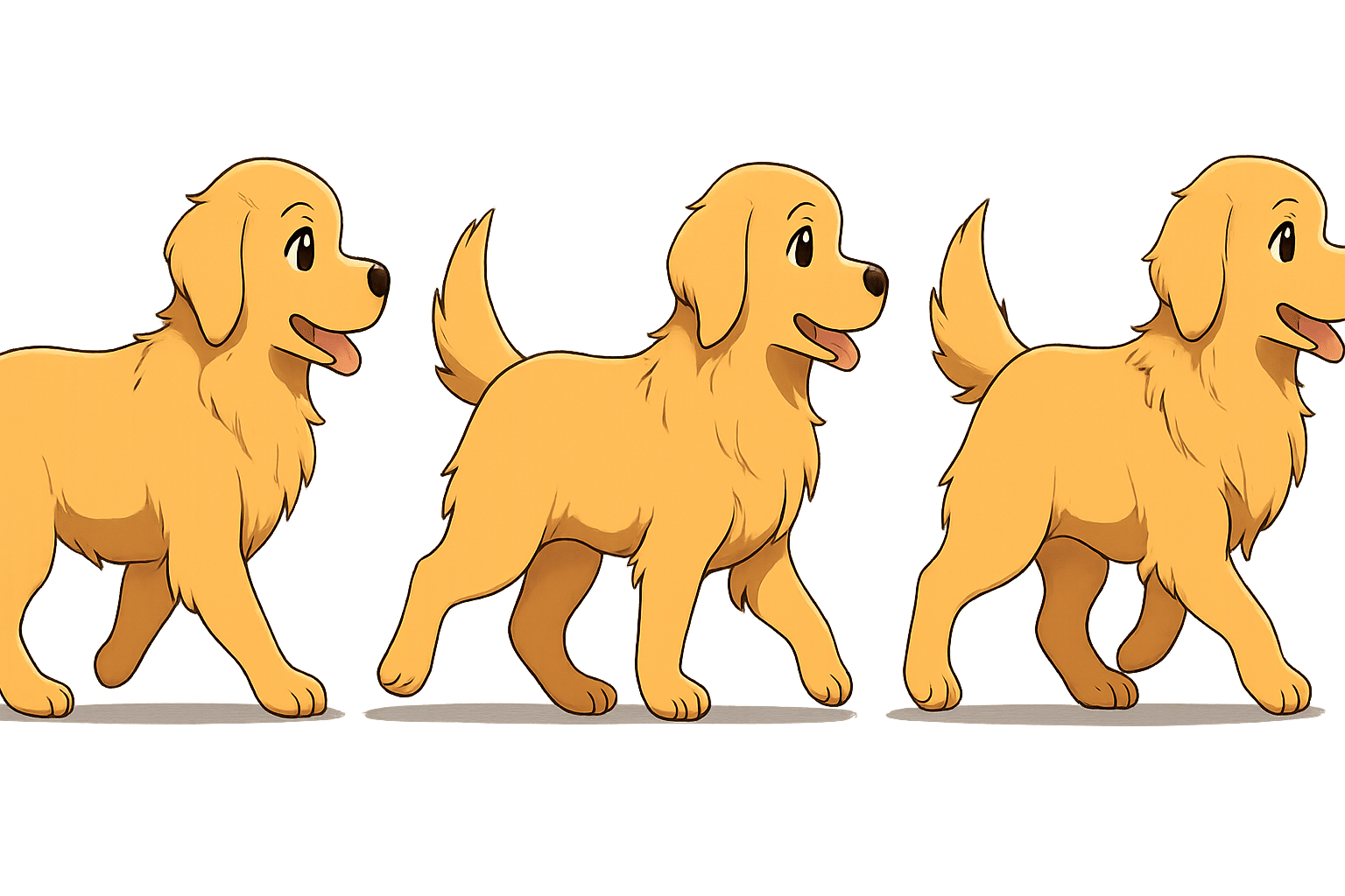 「キャラクターが歩くアニメーション用のスプライトシートを作成して。左から右へ3コマで。」