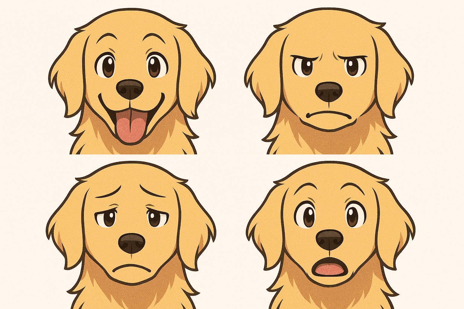 「このキャラクターの喜怒哀楽、4つの表情差分をタイル状に並べて表示して。」