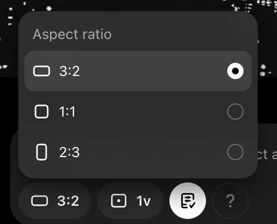 アスペクト比もChatGPT同様、「3:2」「1:1」「2:3」 から選択可能です。