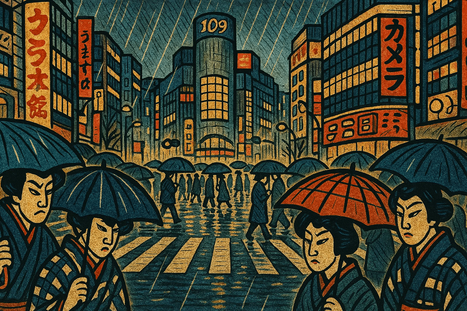 雨の渋谷の交差点