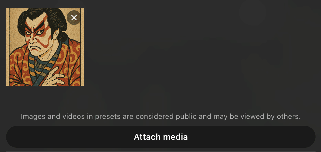 例えば参照したいスタイルの画像を添付することで、その画像の画風や色味、雰囲気を「学習」させたプリセットを作成できます。