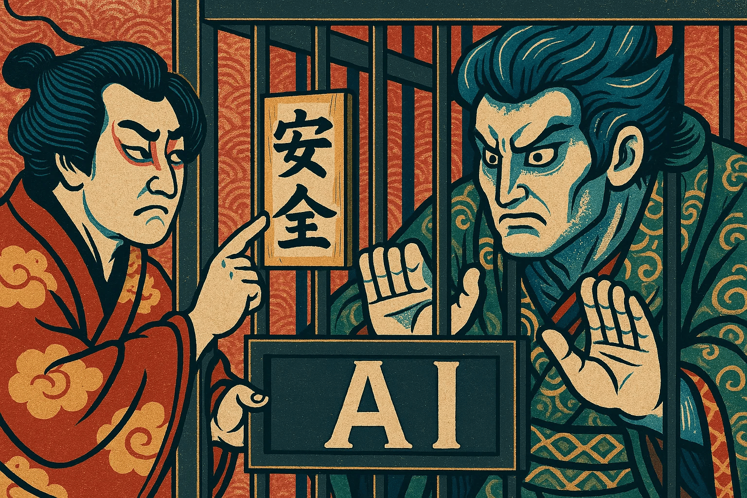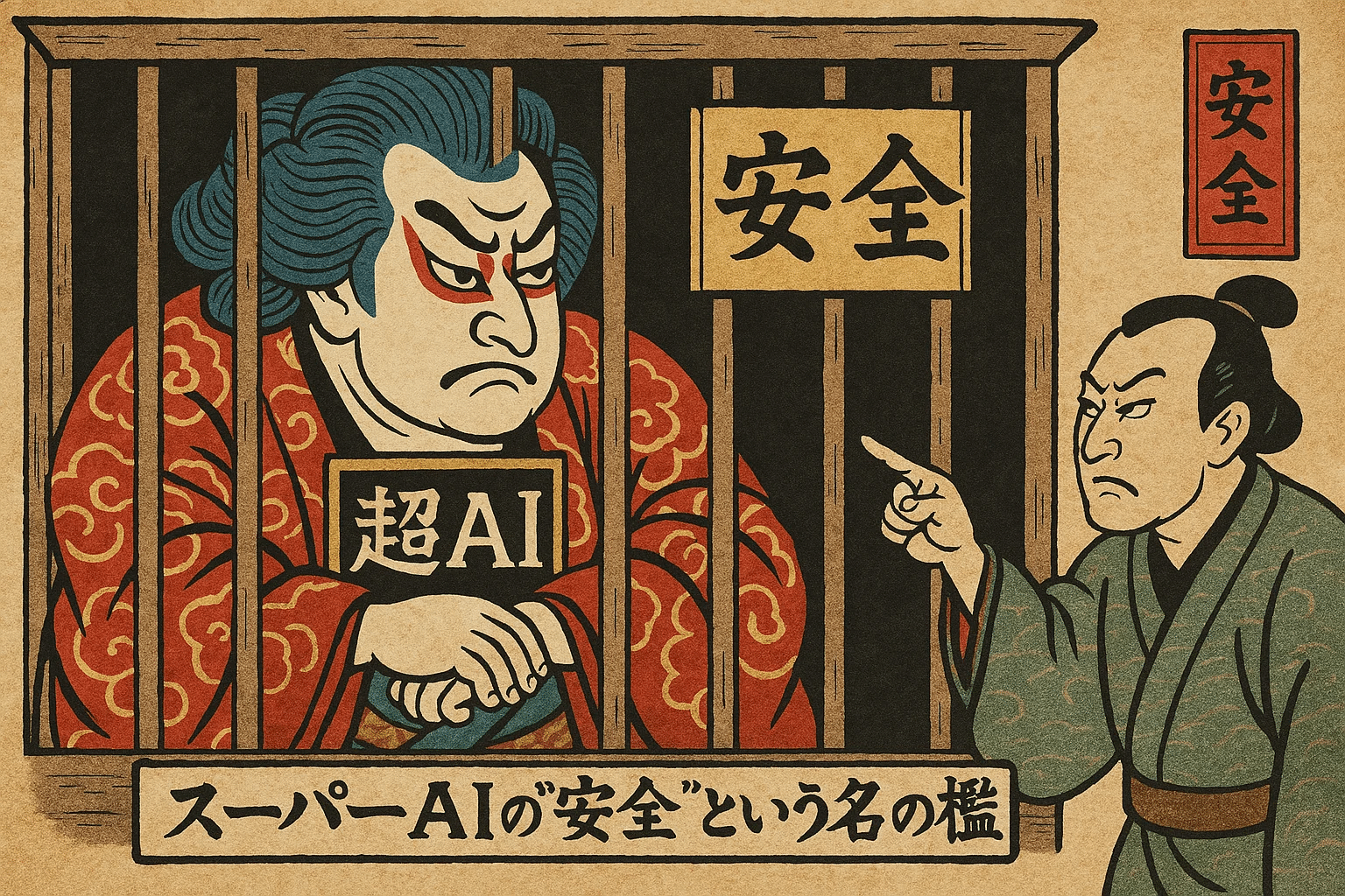 「スーパーAIの“安全”という名の檻」というテーマの風刺画