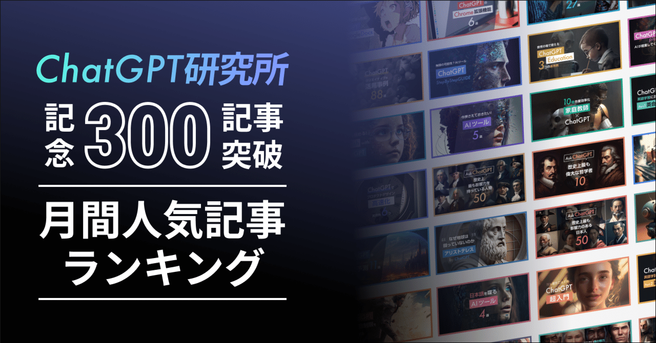ここからは、ChatGPT研究所の記事の中から特に多くの読者に読んで頂いた人気記事トップ10をご紹介します。ぜひ、気になる記事があれば読んでみてください。