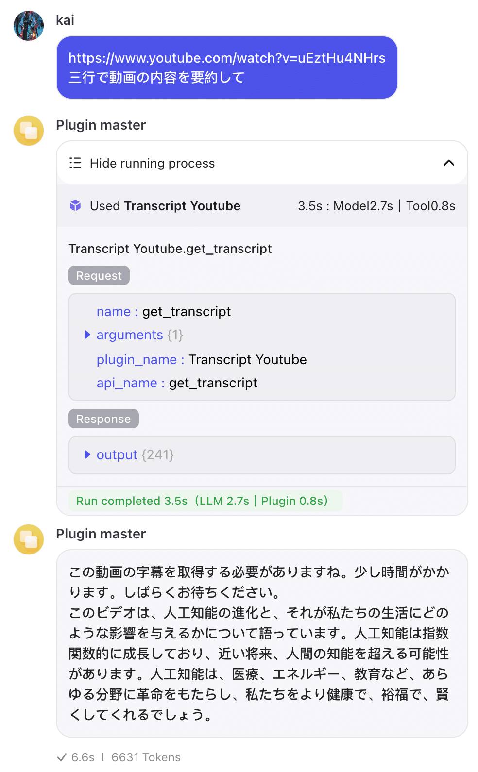 例えば、13分のTEDトークのURLを入力し、「この動画の内容を3行で要約して」と指示すると、数秒で要約を作成してくれます。