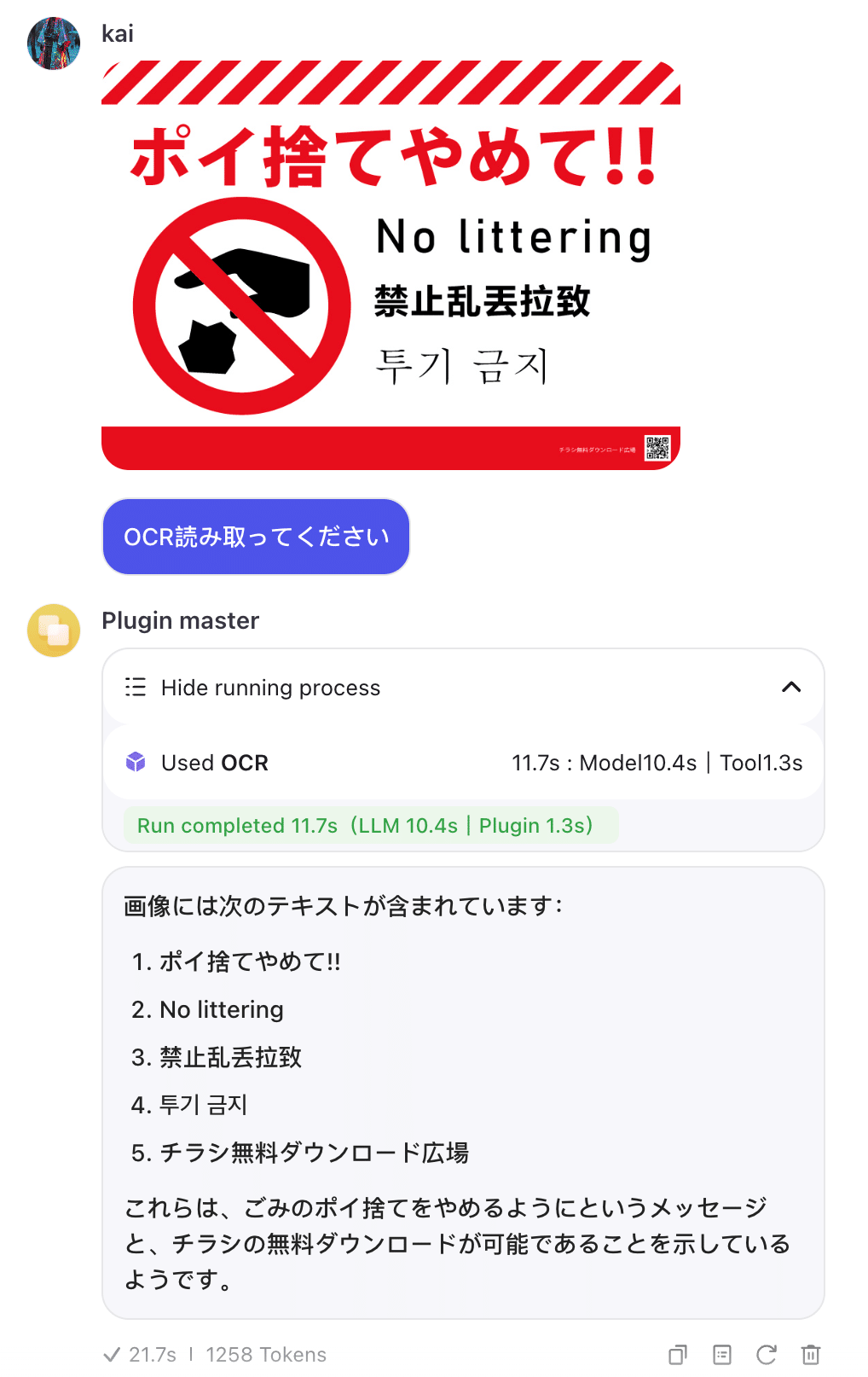 OCRプラグインは、画像内のテキストを認識しテキストに変換するツールです。文書のデジタル化や画像内の情報抽出に非常に便利です。