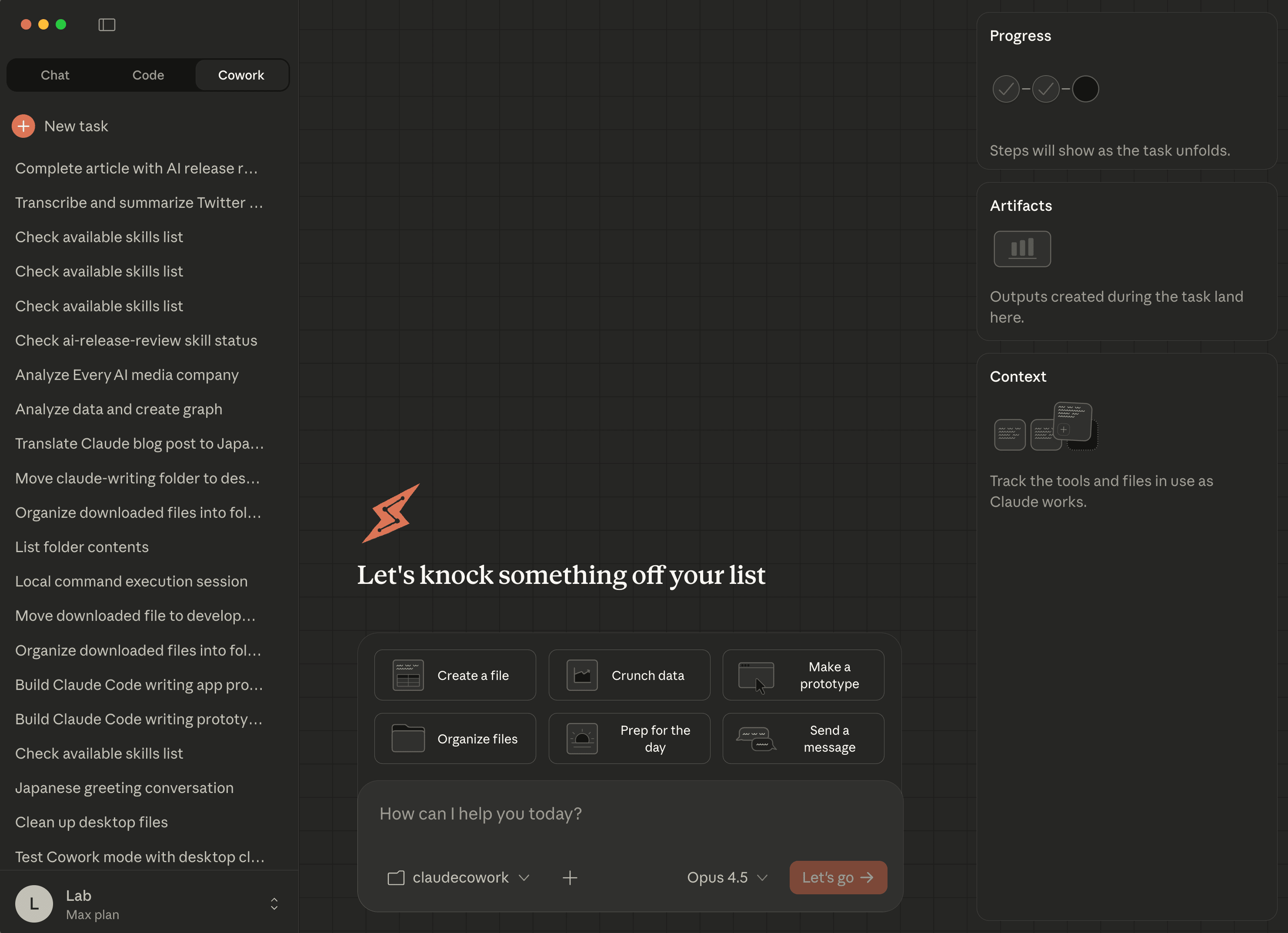 リリース当日、AGIラボのDiscordコミュニティで「Cowork触ってみる会」を開催しました。筆者が実際に操作しながら画面共有を行い、参加者と一緒に機能を検証した結果をお伝えします。