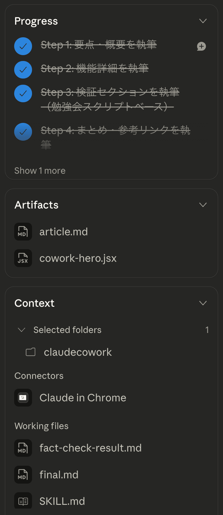 「ファクトチェックのためサブエージェントを使って検証します」と指示をしなくてもエージェントを活用したのは印象的でした。