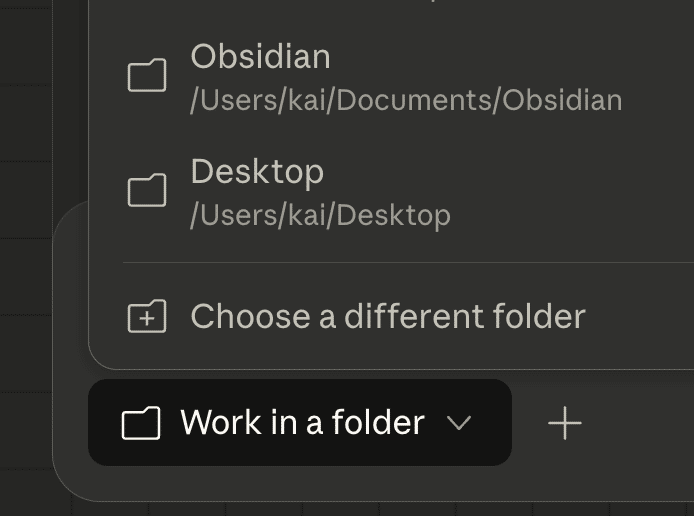 ② 入力欄の「Work in a folder」でアクセスを許可するフォルダを選択(選択しなくても利用できます。詳細は後述)